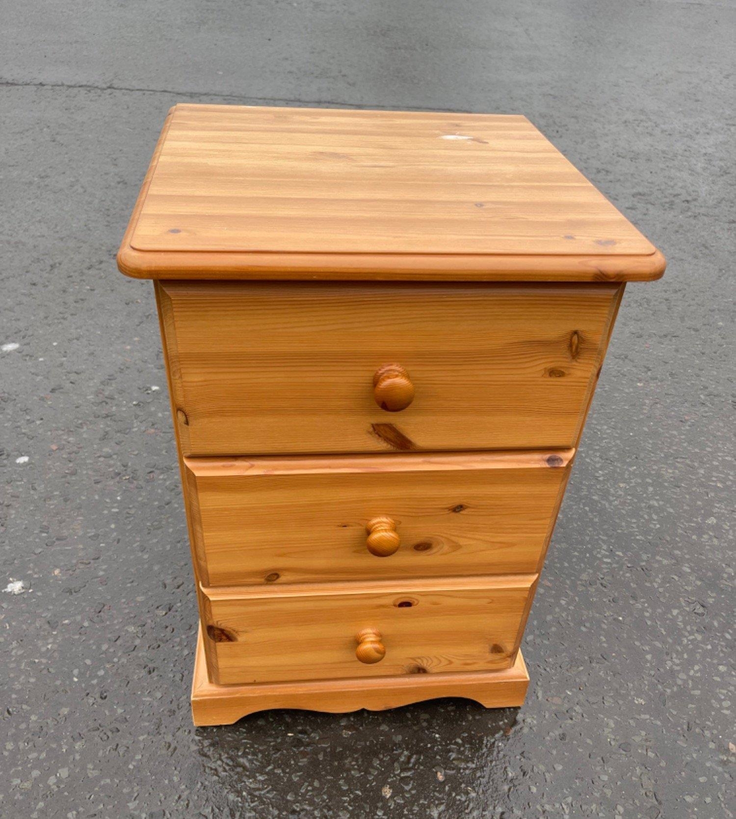 A 3 drawer pine bedside drawer unit - 18" x 12" x 2ft height approx - IDEAL FOR UPCYCLING!
