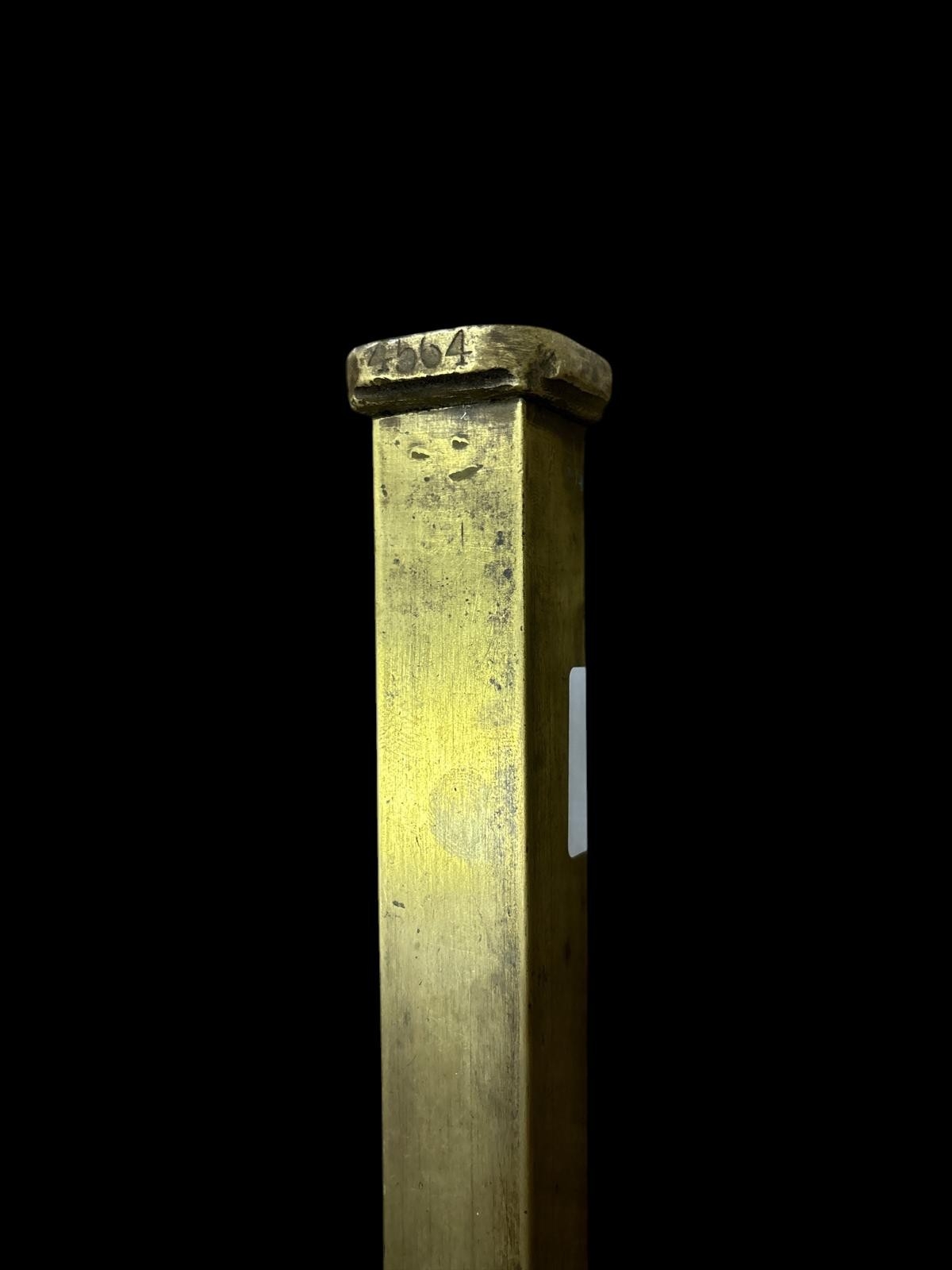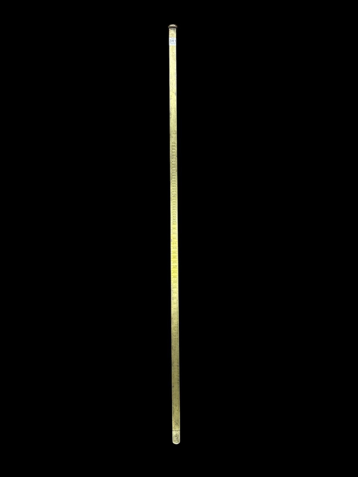 A VINTAGE ANTIQUE BRASS FUEL GAUGE bearing serial no. 20797. Approx. 59cm