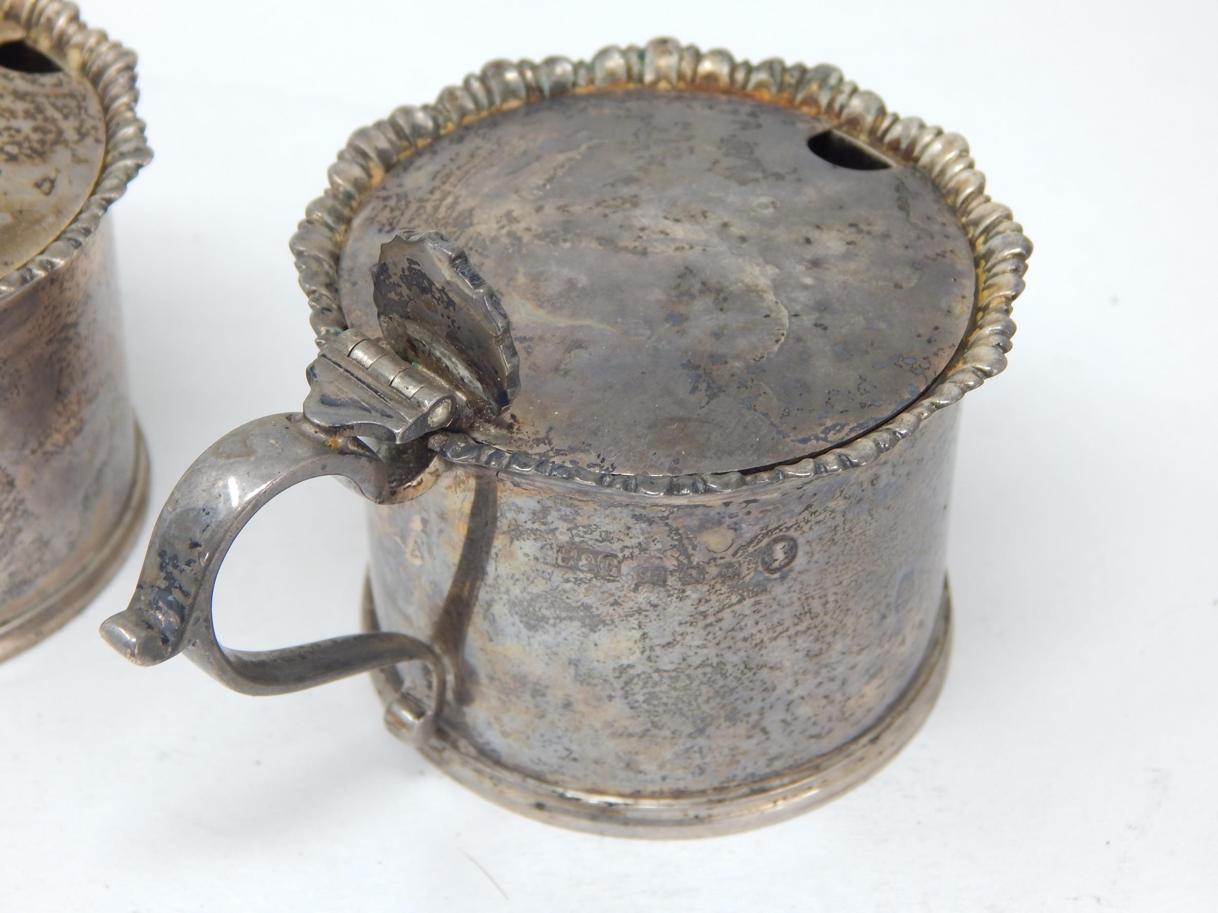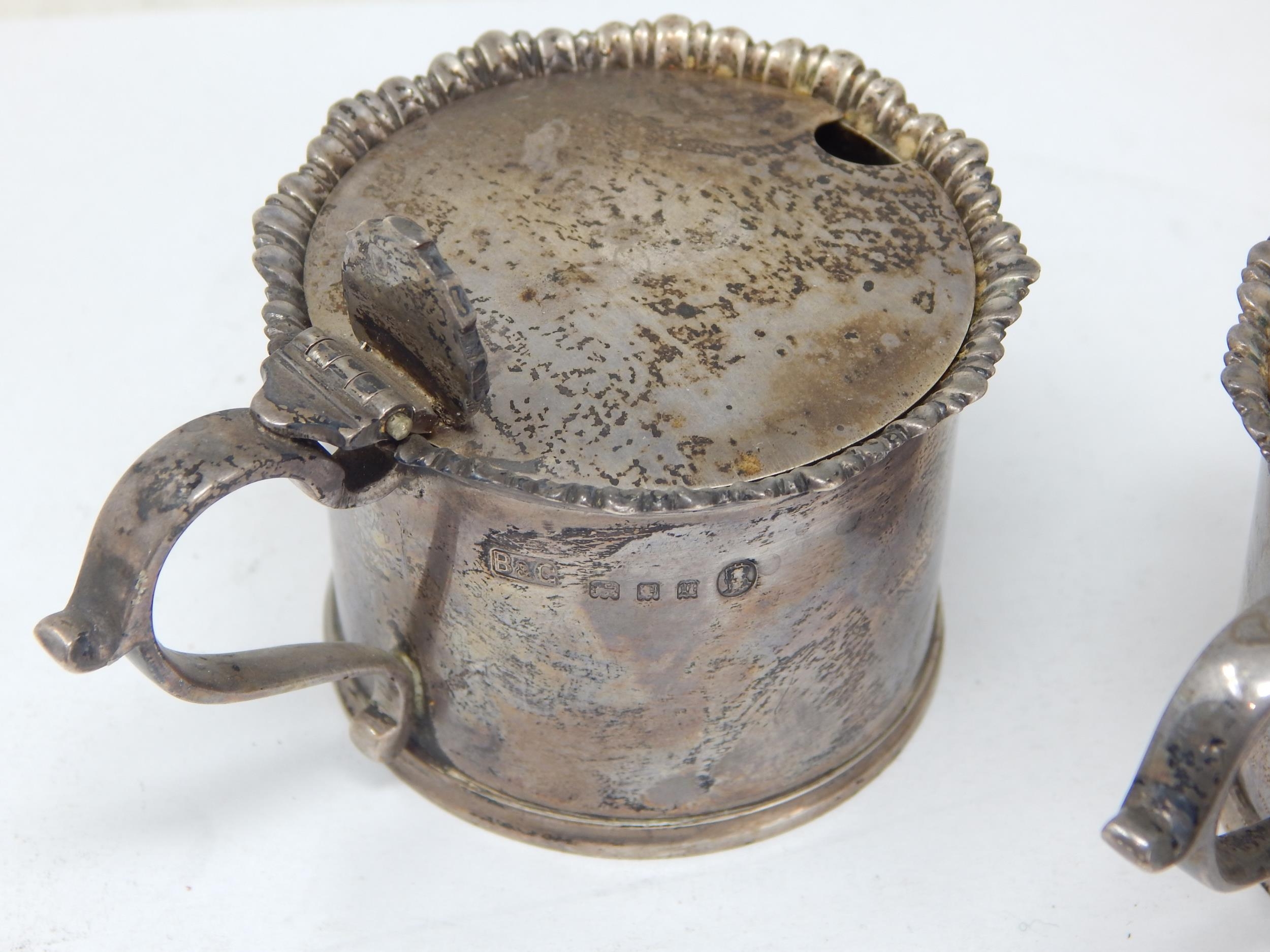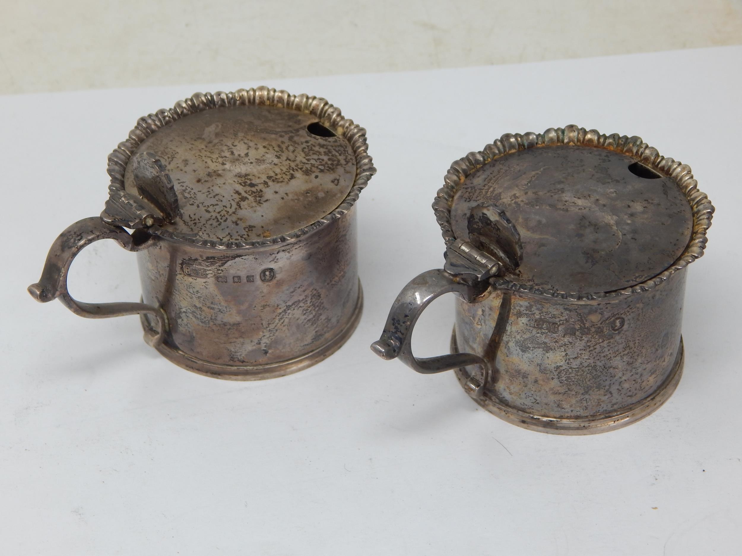 Pair of Silver Mustard Pots (No Liners) Hallmarked London 1935 by Birch & Gaydon: Weight 184g