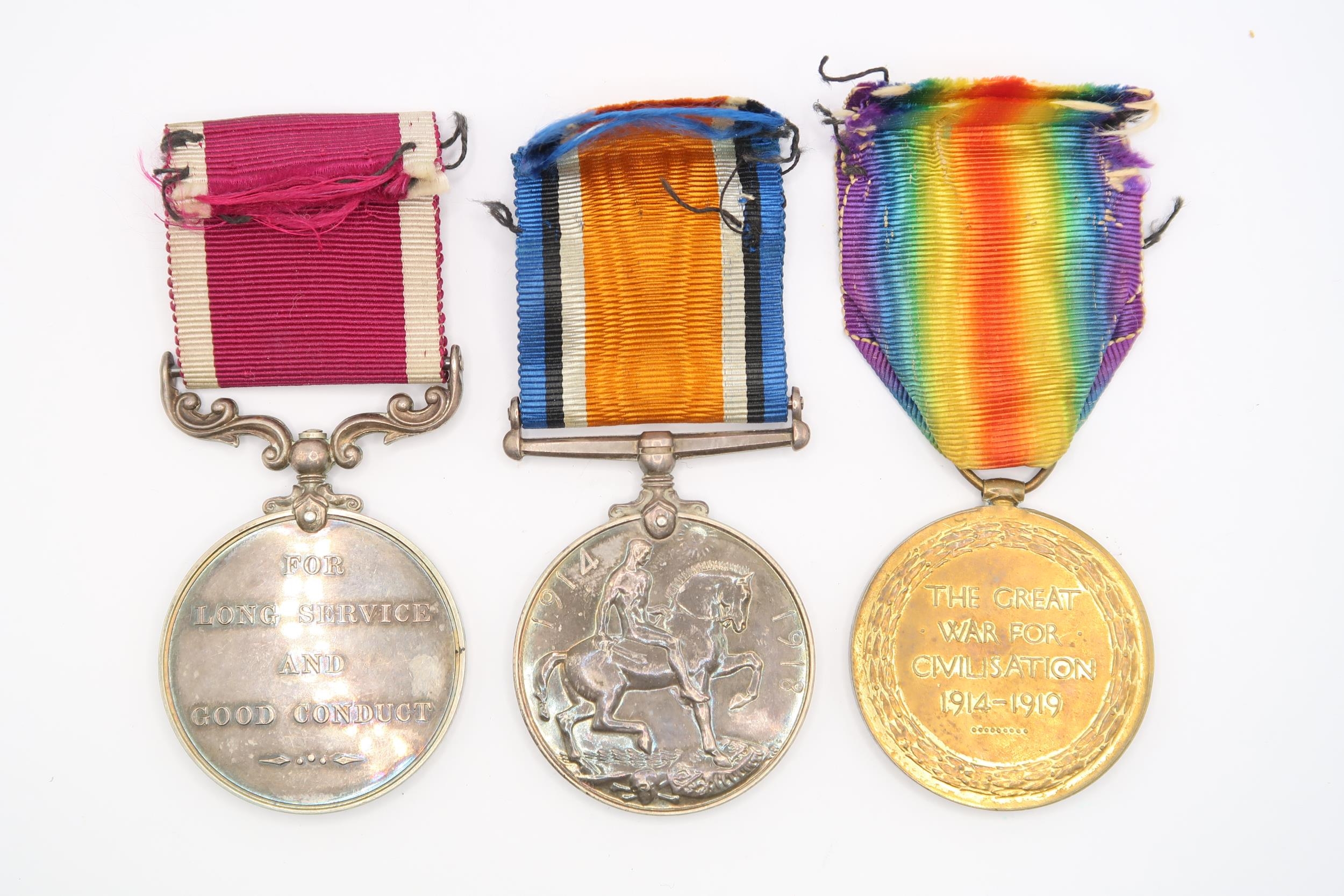A Group of Three WW1 British War Medals to include one for 'Long Service and Good Conduct', Issued to S.SJT F. Allenby 1765, Military Provost Staff Corps.
