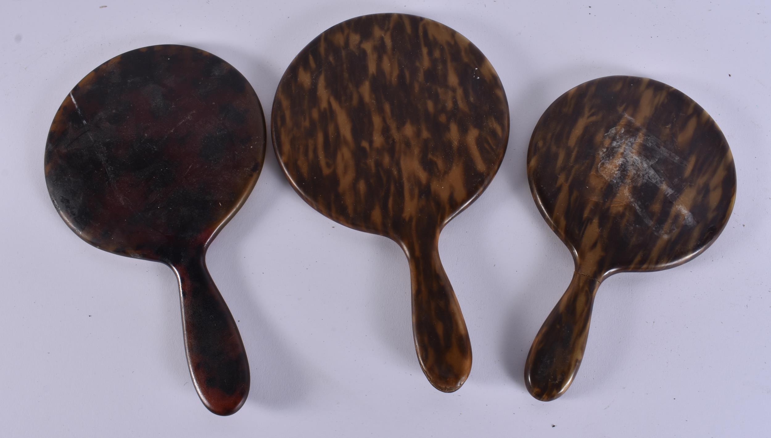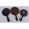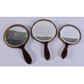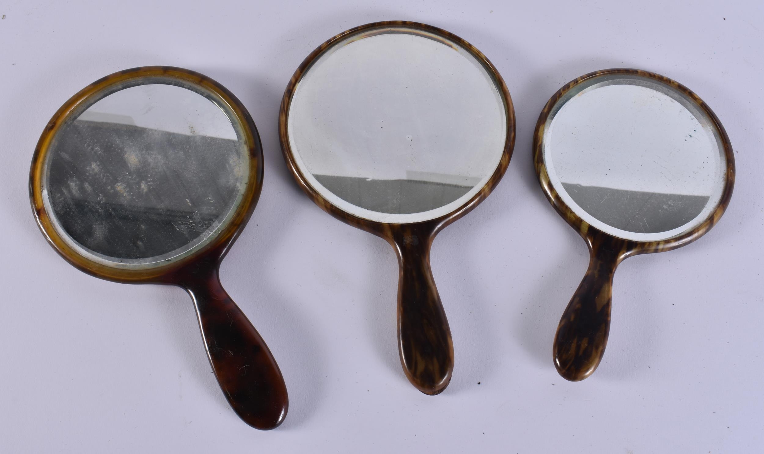 THREE VINTAGE FAUX TORTOISESHELL VANITY MIRRORS. 34 cm long. (3)