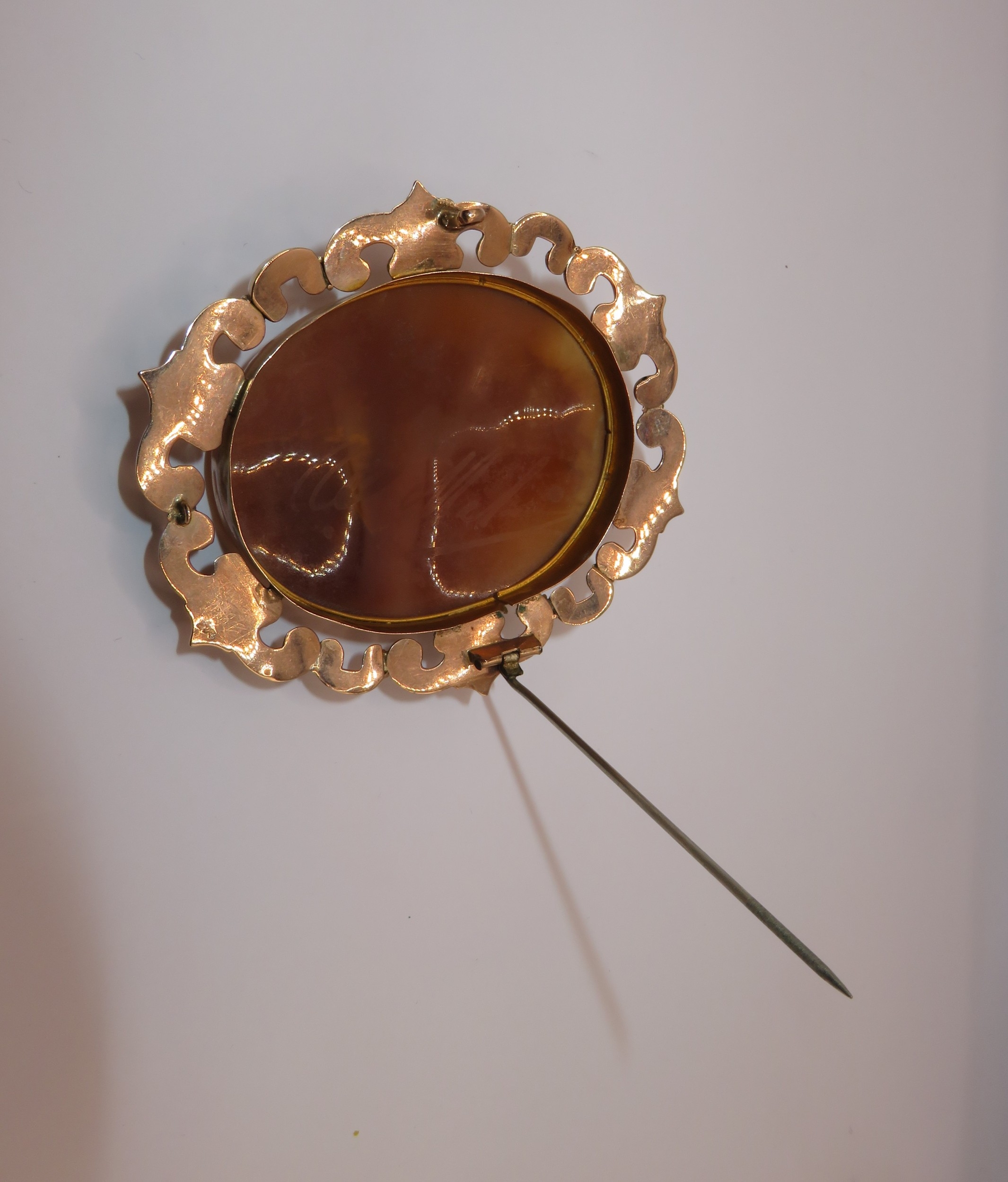 Large 19th Century 9ct gold mounted carved shell cameo portrait brooch, the cameo 55 x 43mm