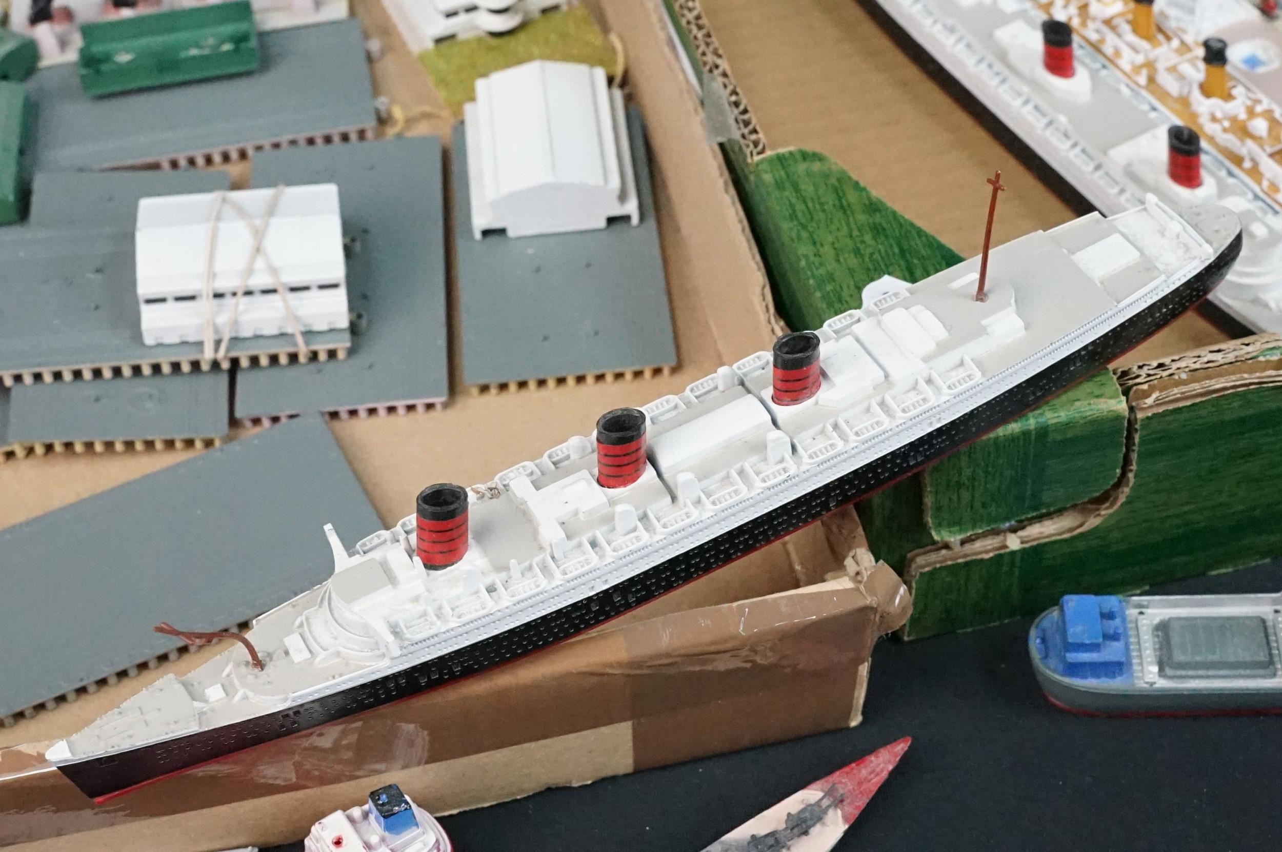 Collection of diecast & plastic model ships and accessories to include many Triang Minic examples featuring M703 Queen Mary, M702 Queen Elizabeth, M704 United States etc plus