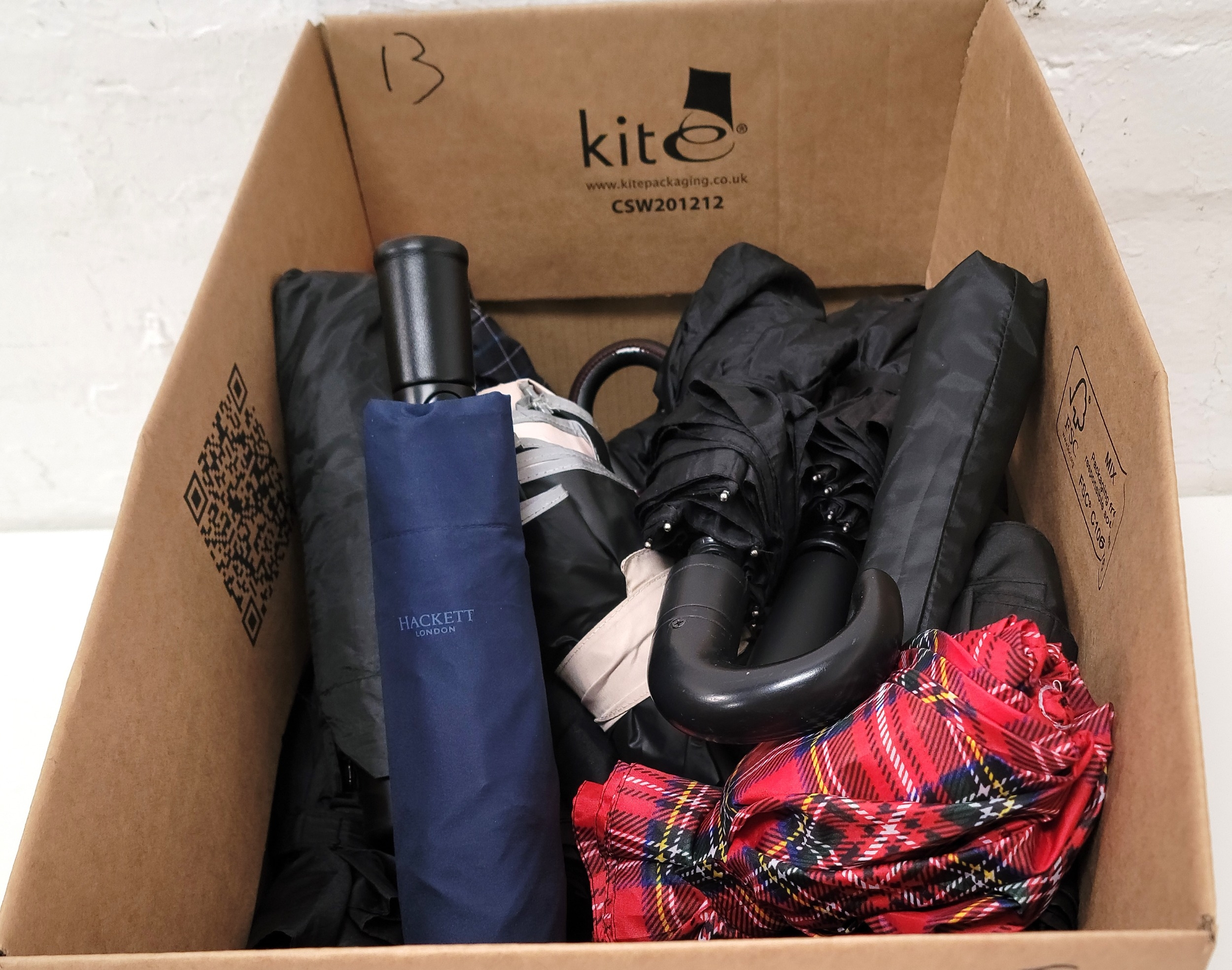 ONE BOX OF UMBRELLAS including: Hackett of London