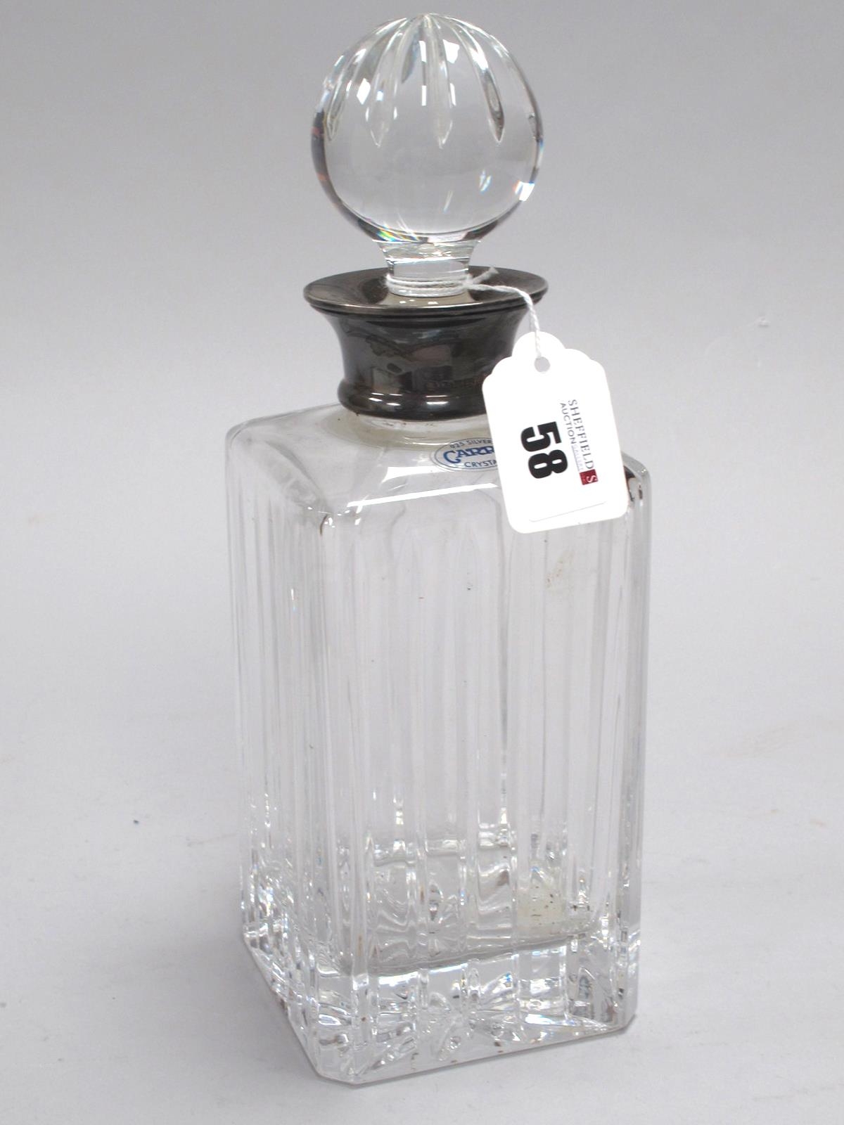 A Modern Hallmarked Silver Mounted Glass Stoppered Decanter, RC (Carrs), Sheffield 2001, approximately 27cm high.