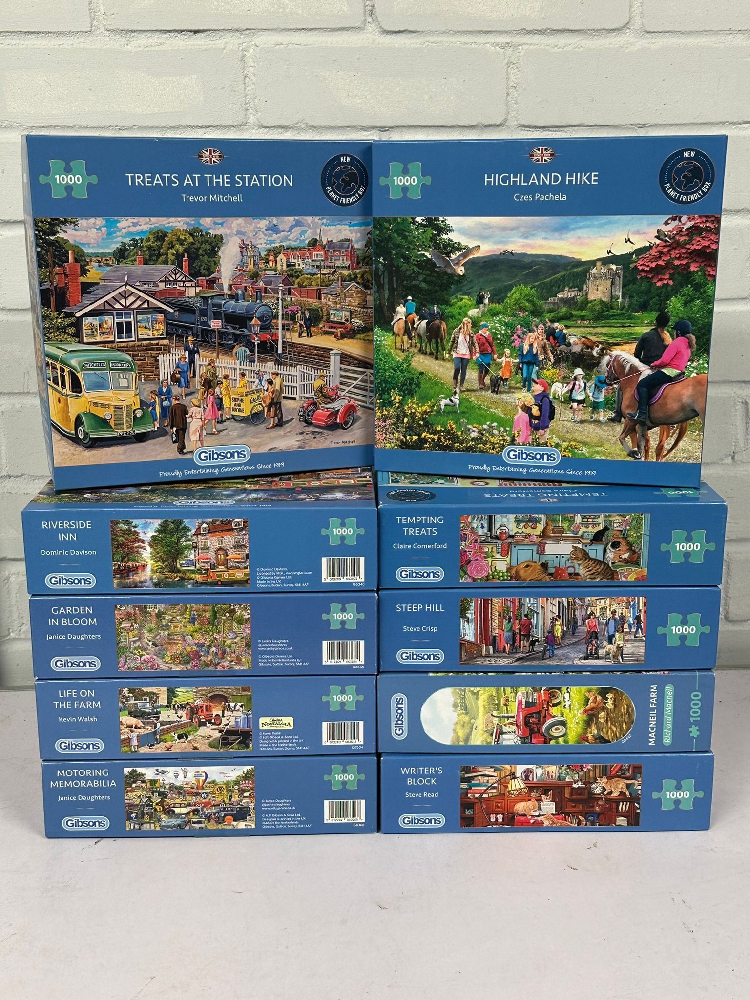 10 boxed Gibson 1000 piece puzzles (Some are new and sealed others have been retaped and bagged following completion - unchecked for completeness)