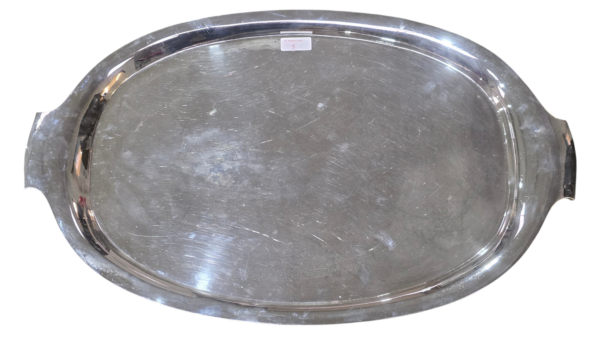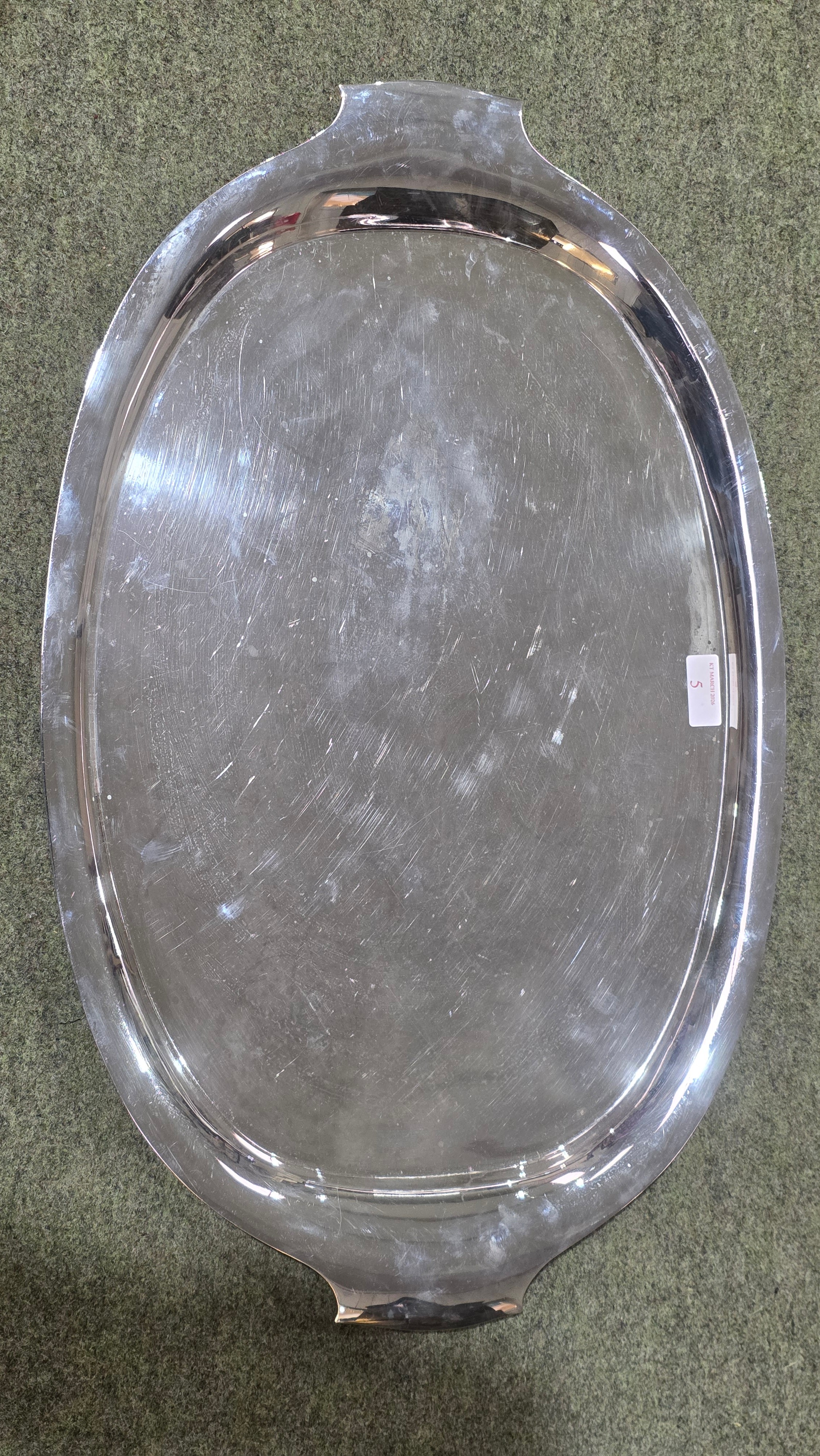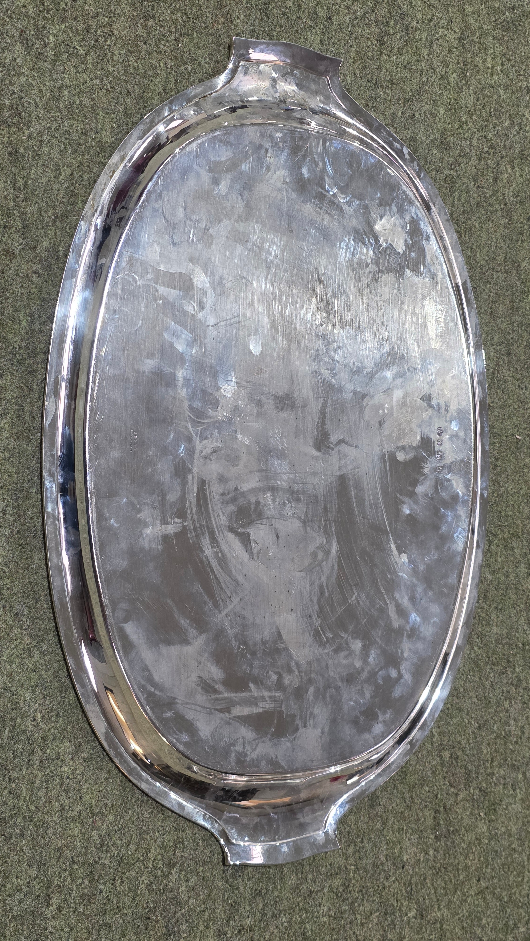 A sterling silver oval tray. 60 cm x 37 cm. 2018g. Elkington & Co Birmingham 1931