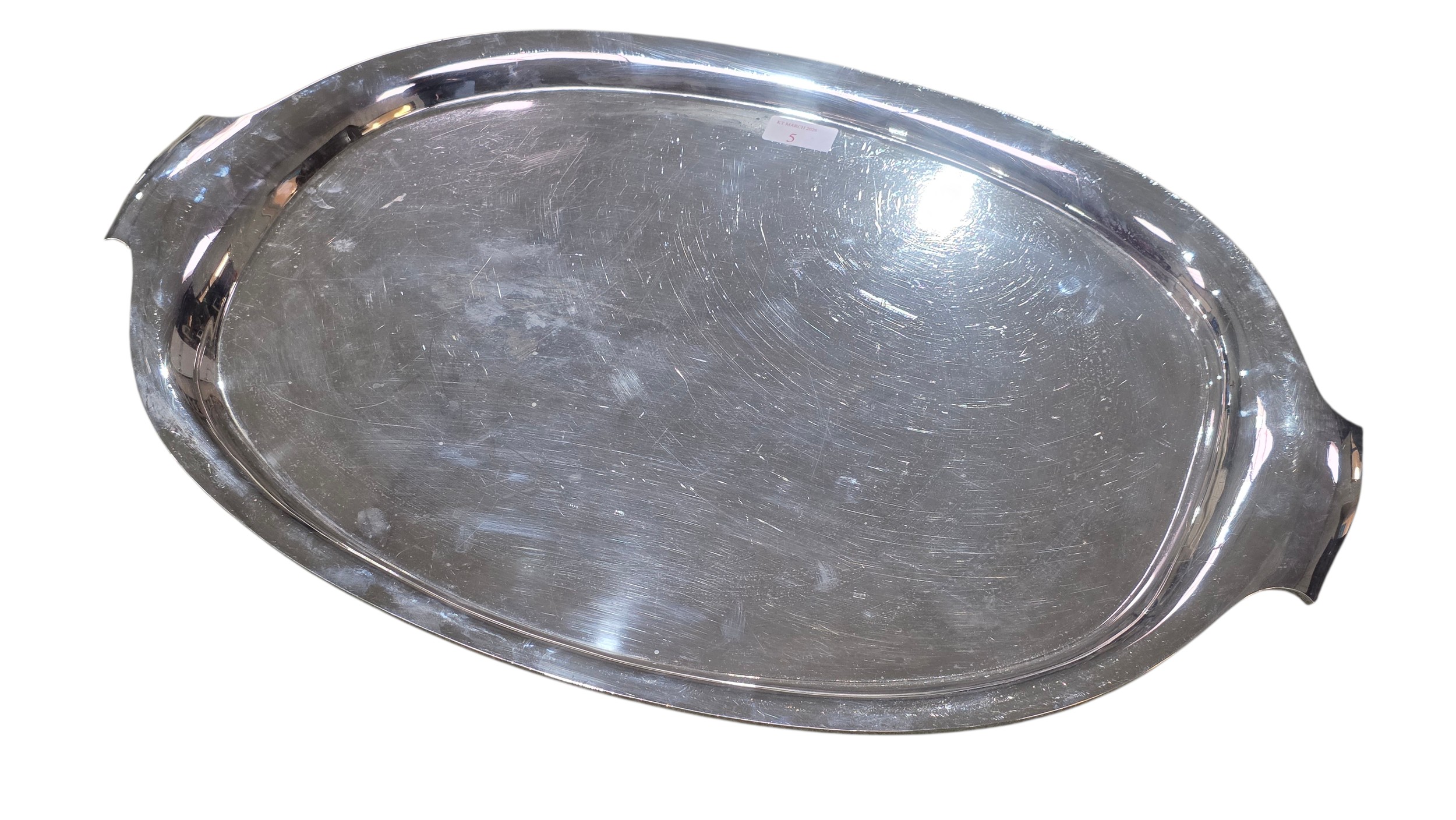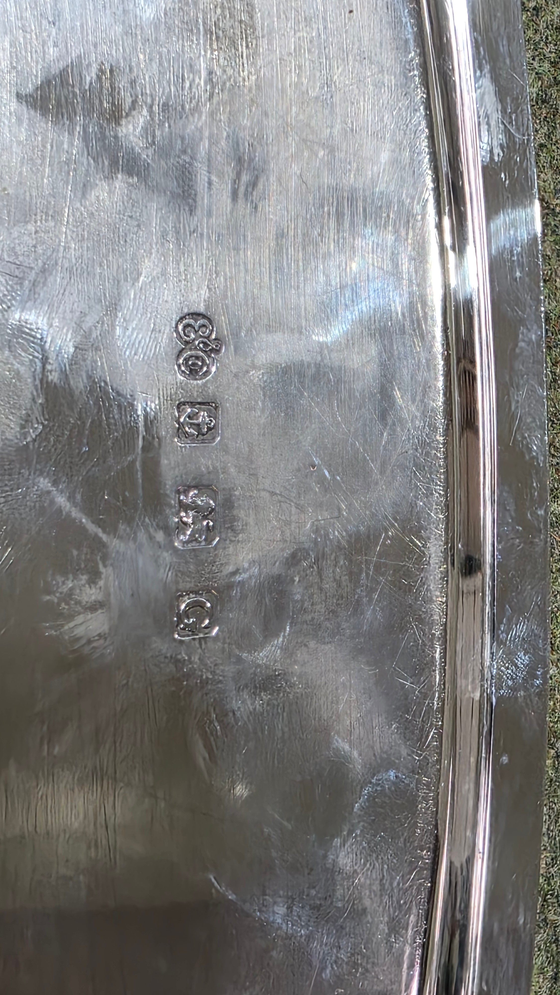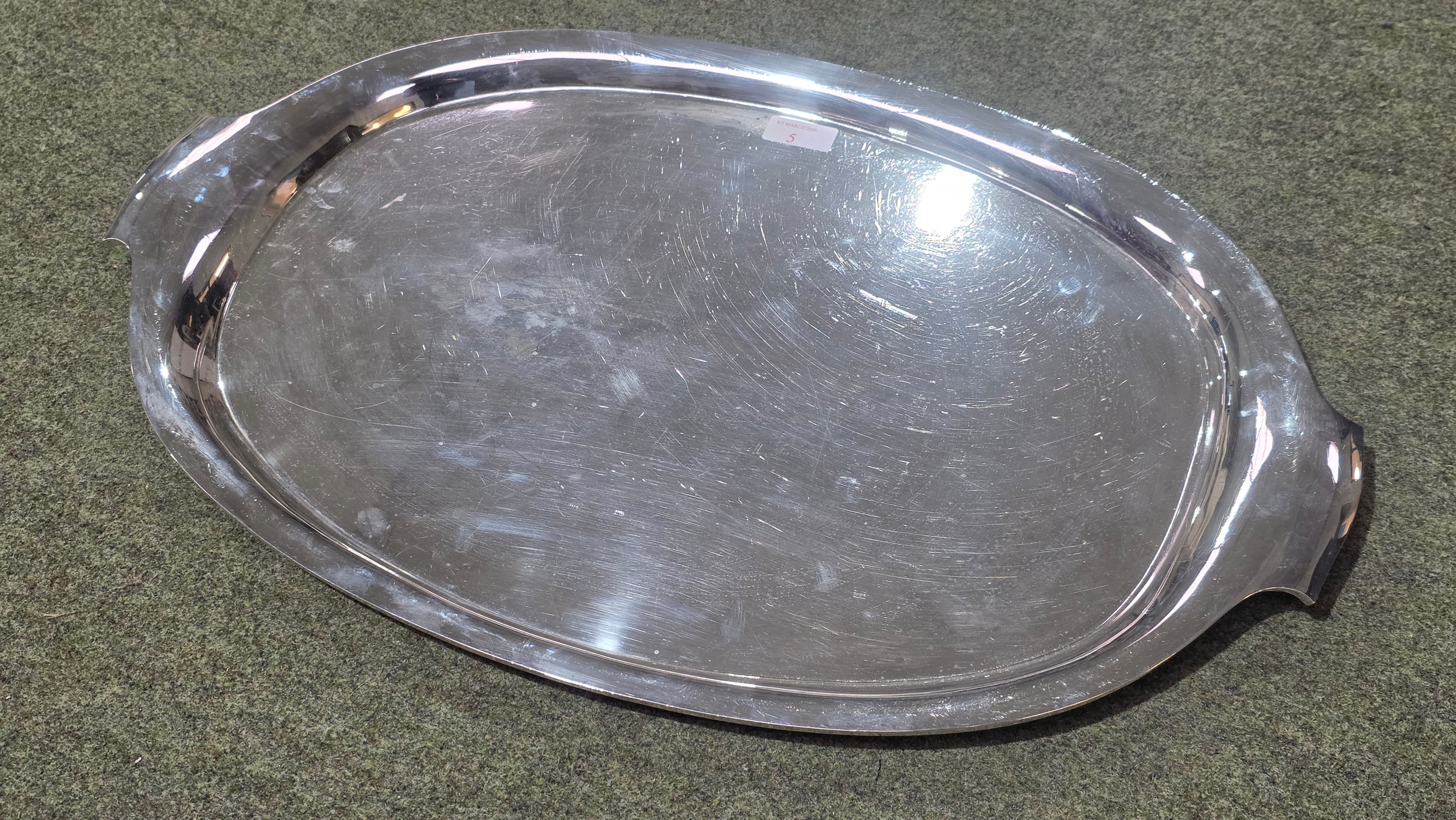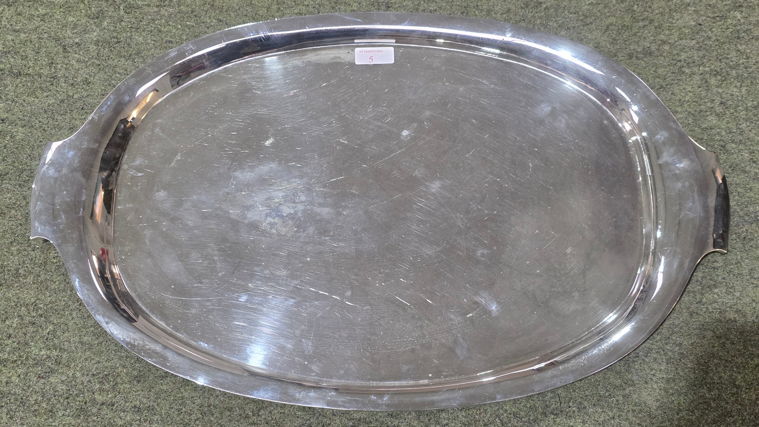 A sterling silver oval tray. 60 cm x 37 cm. 2018g. Elkington & Co Birmingham 1931
