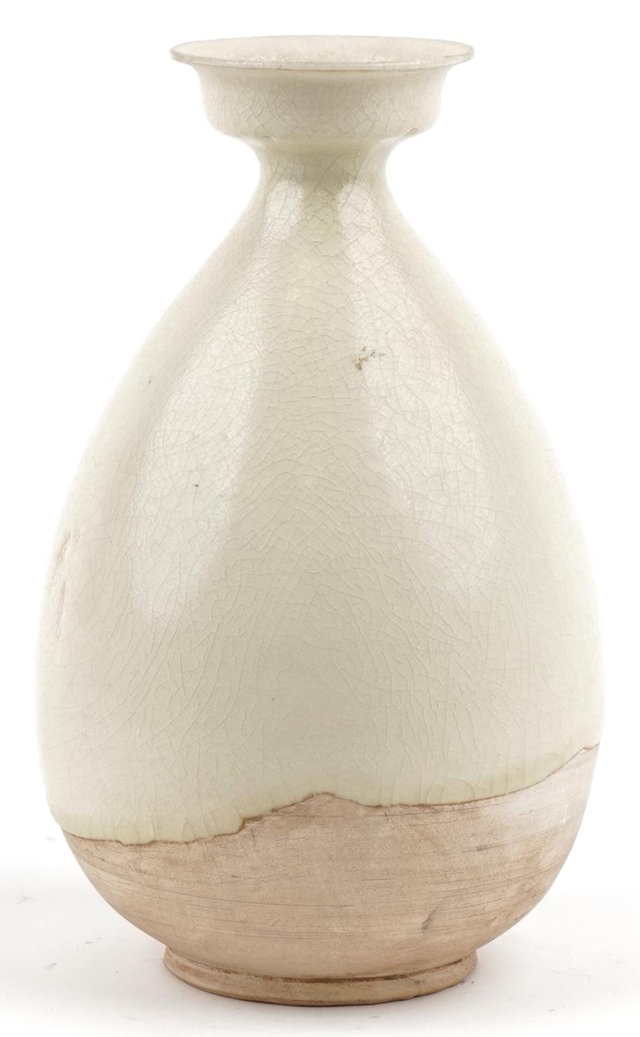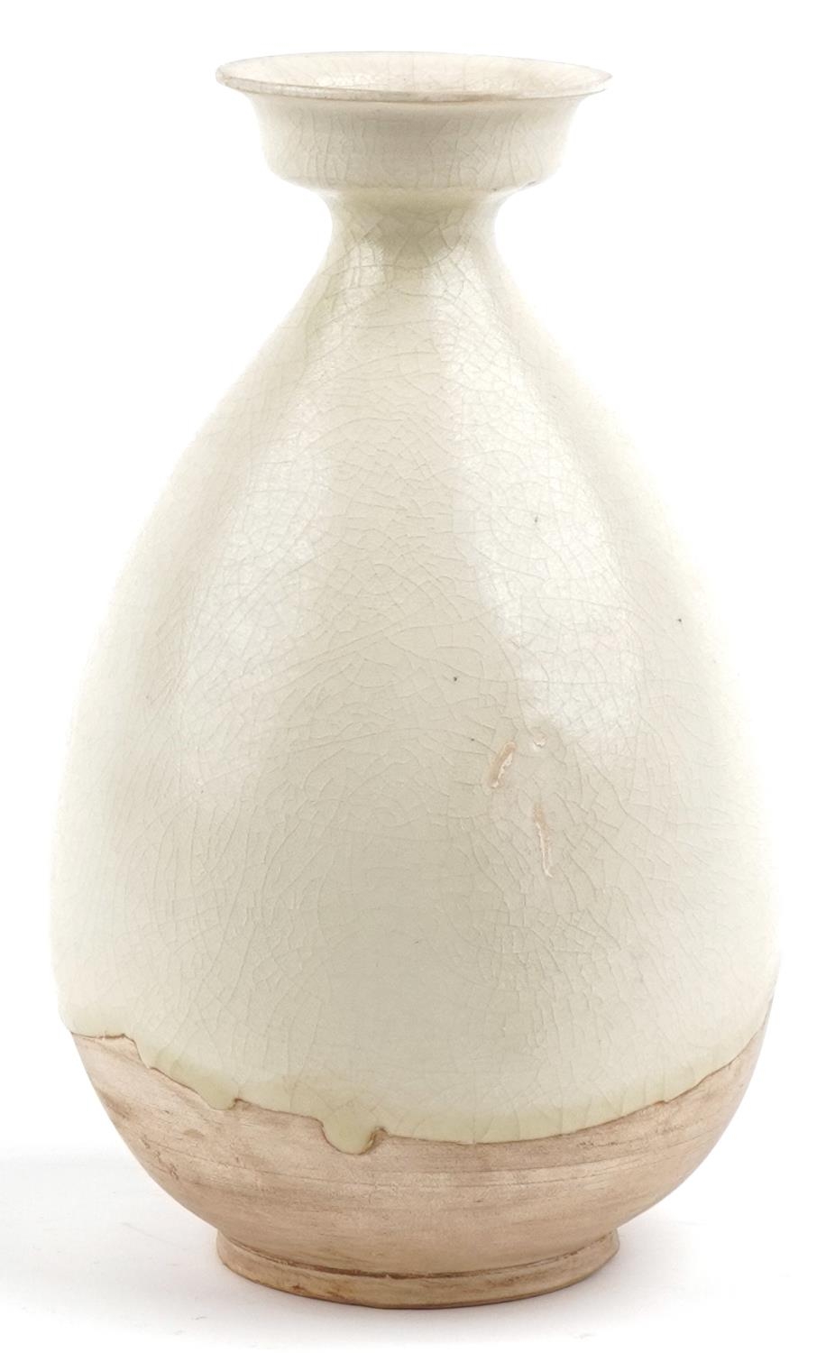 A Chinese cream glazed pottery vase, 26cm high.
