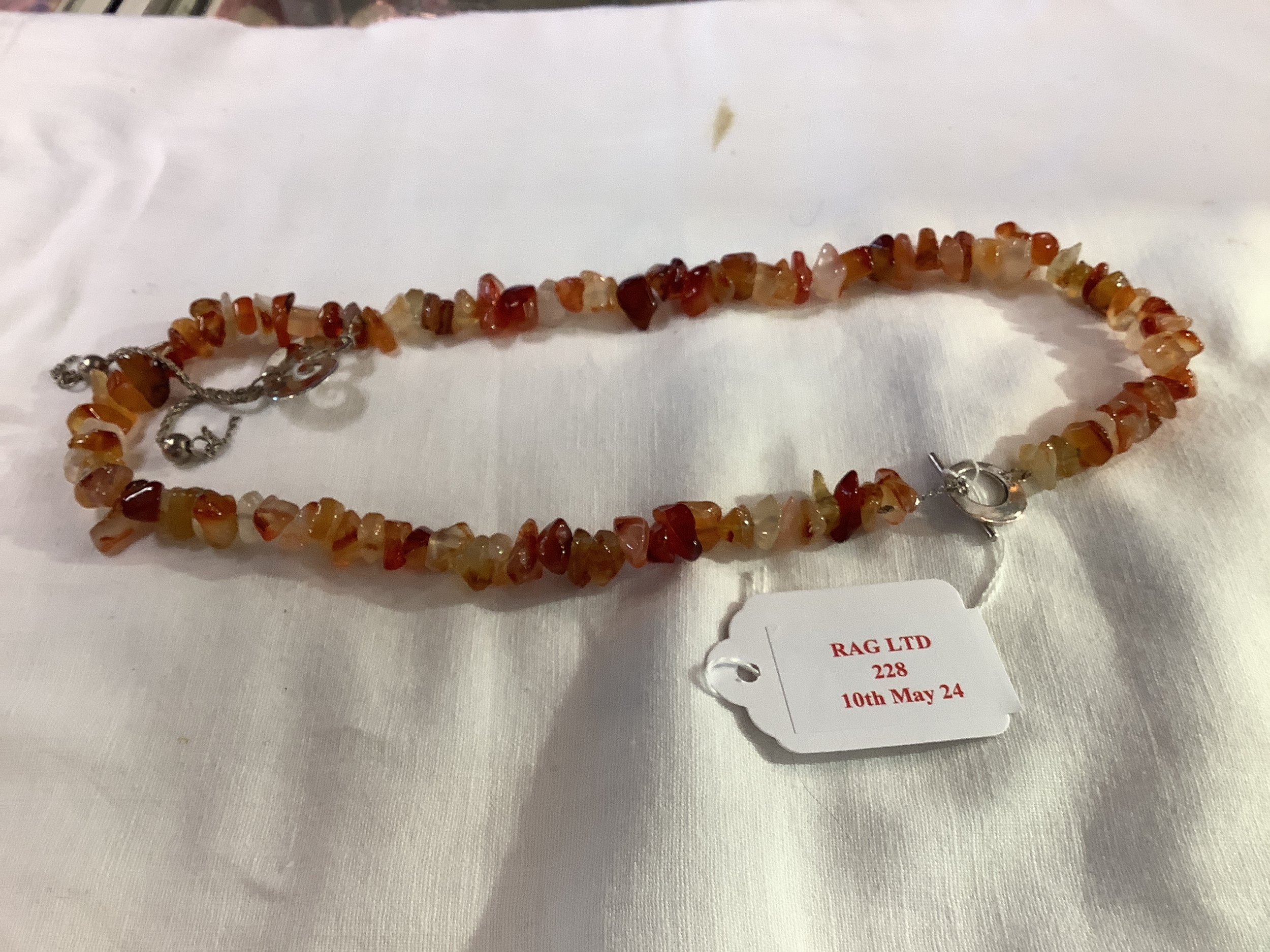 A Quartz necklace with a silver clasp and drop