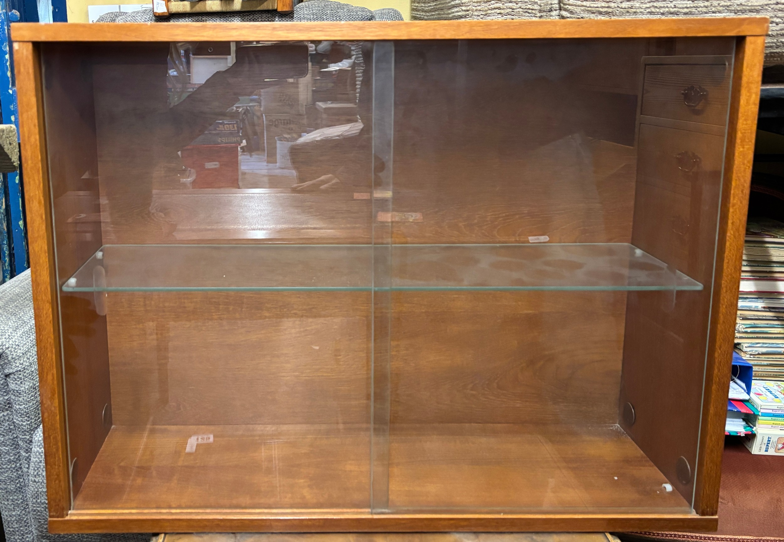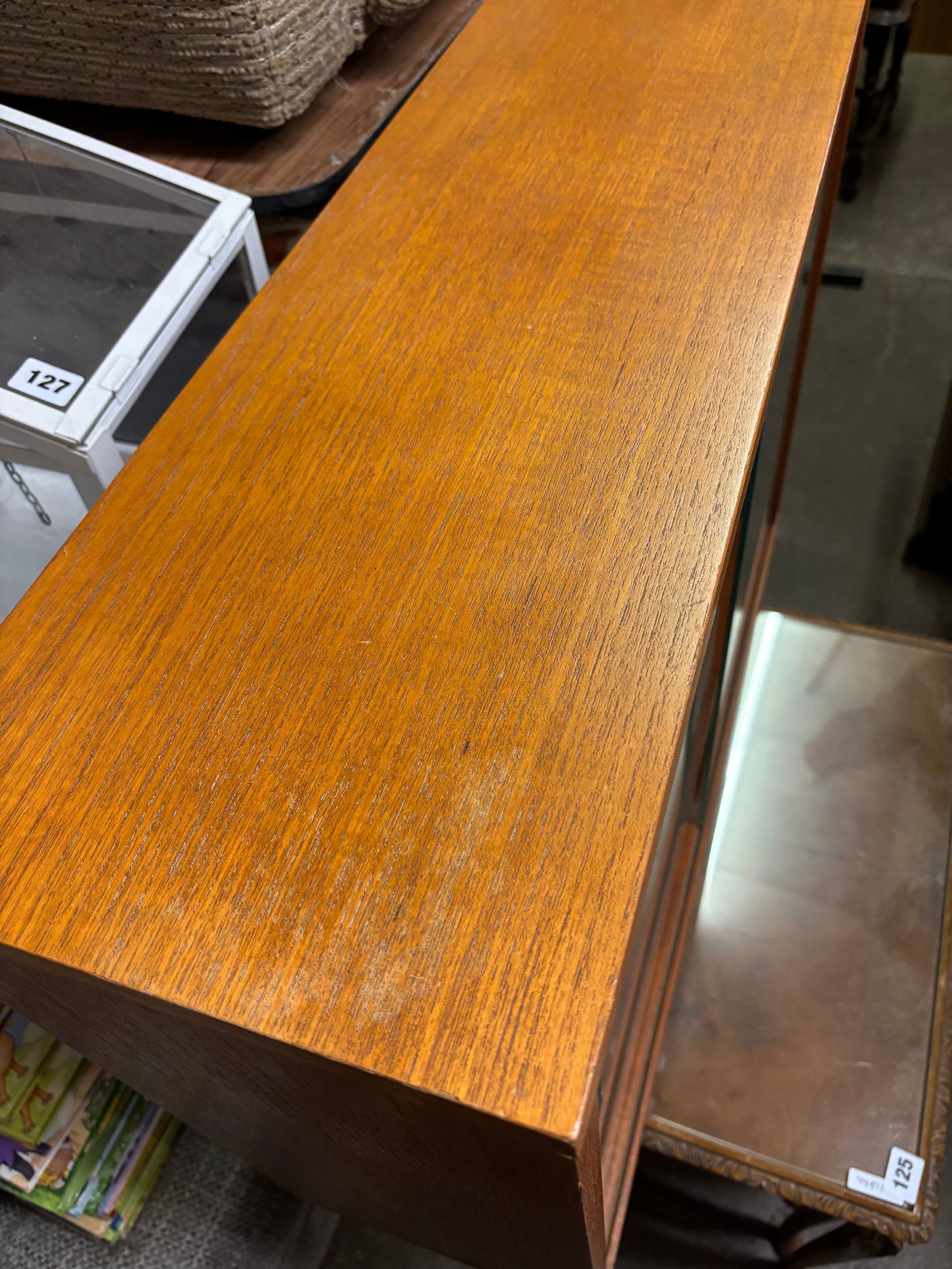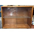 TEAK CUPBOARD WITH GLAZED SLIDING DOORS