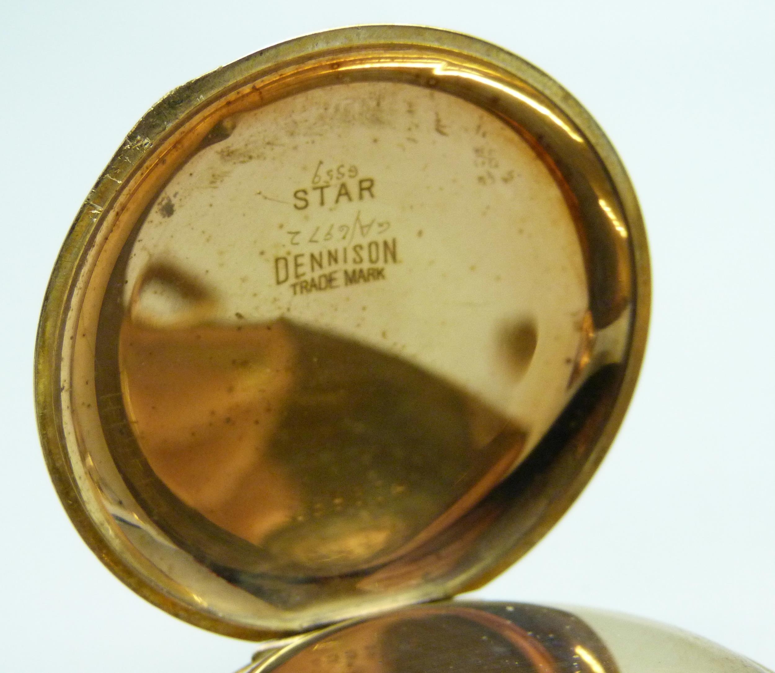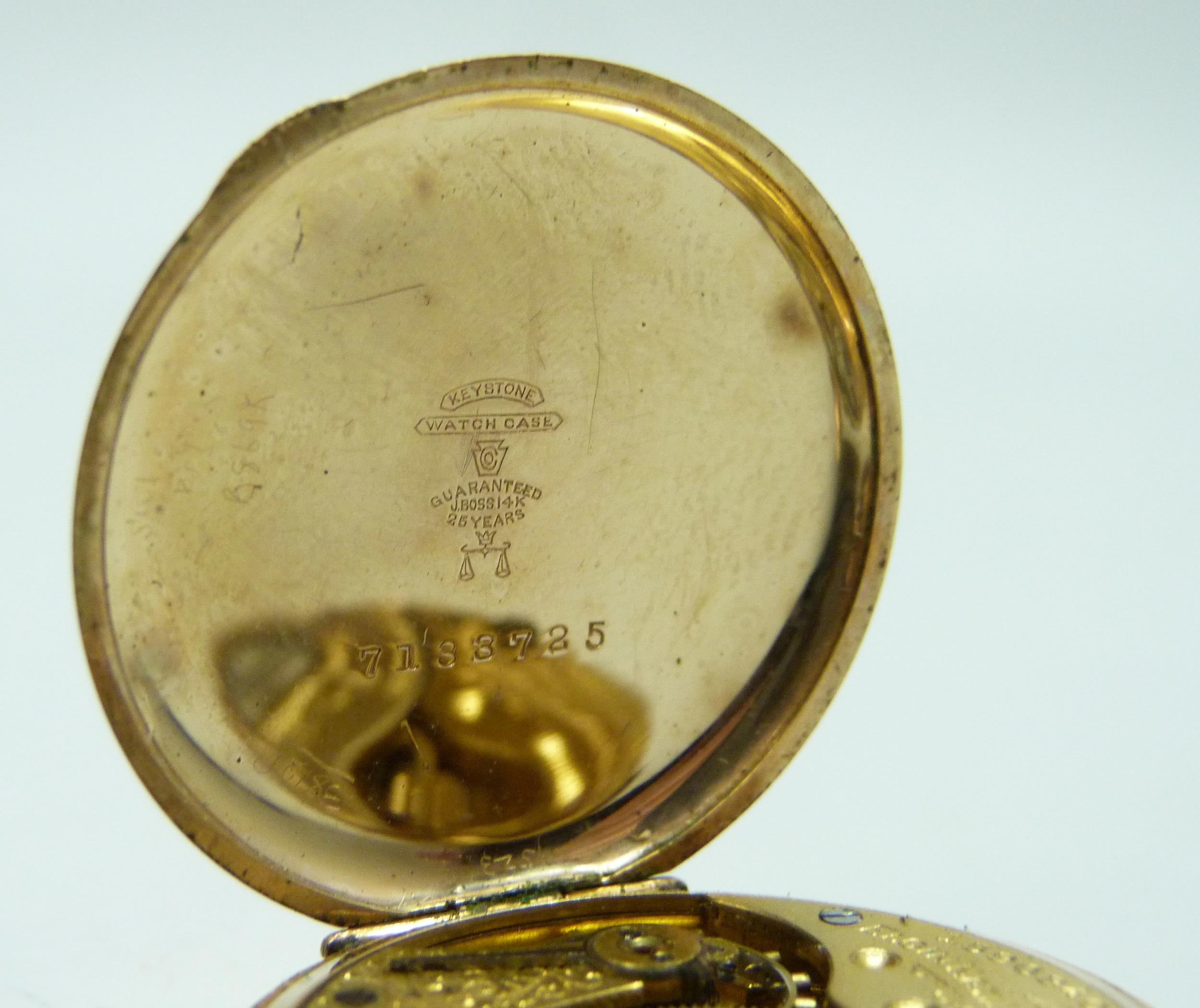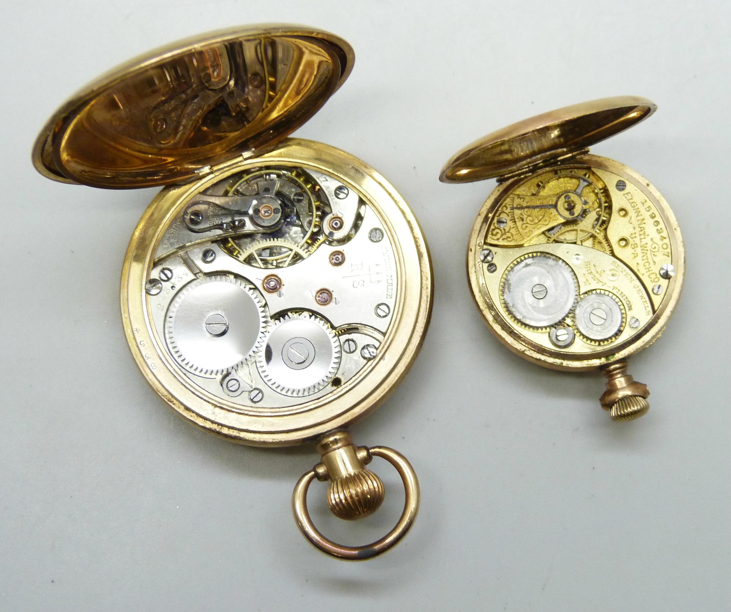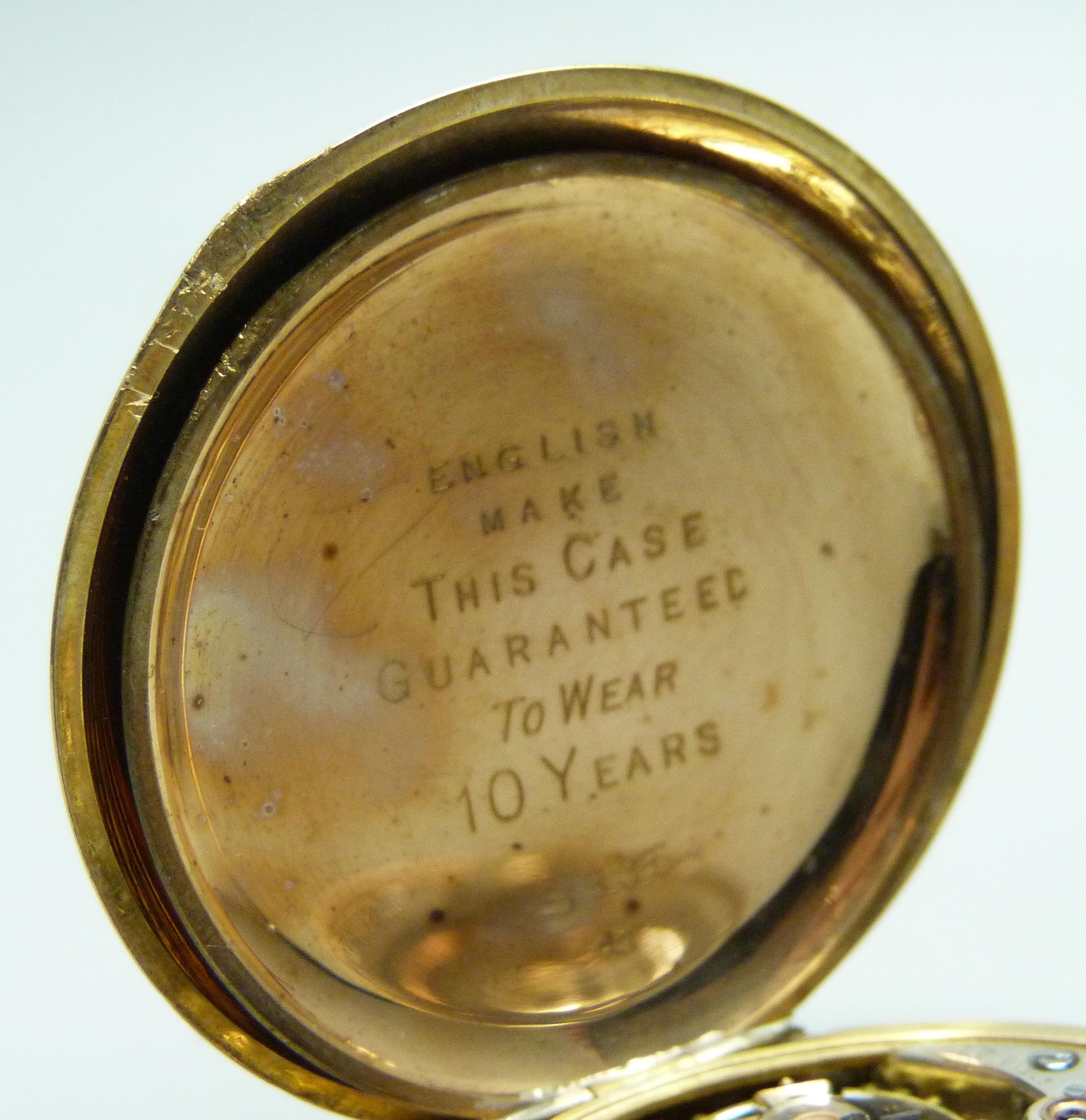 Two gold plated watches, a fob watch, and a half hunter pocket watch with enamel numerals