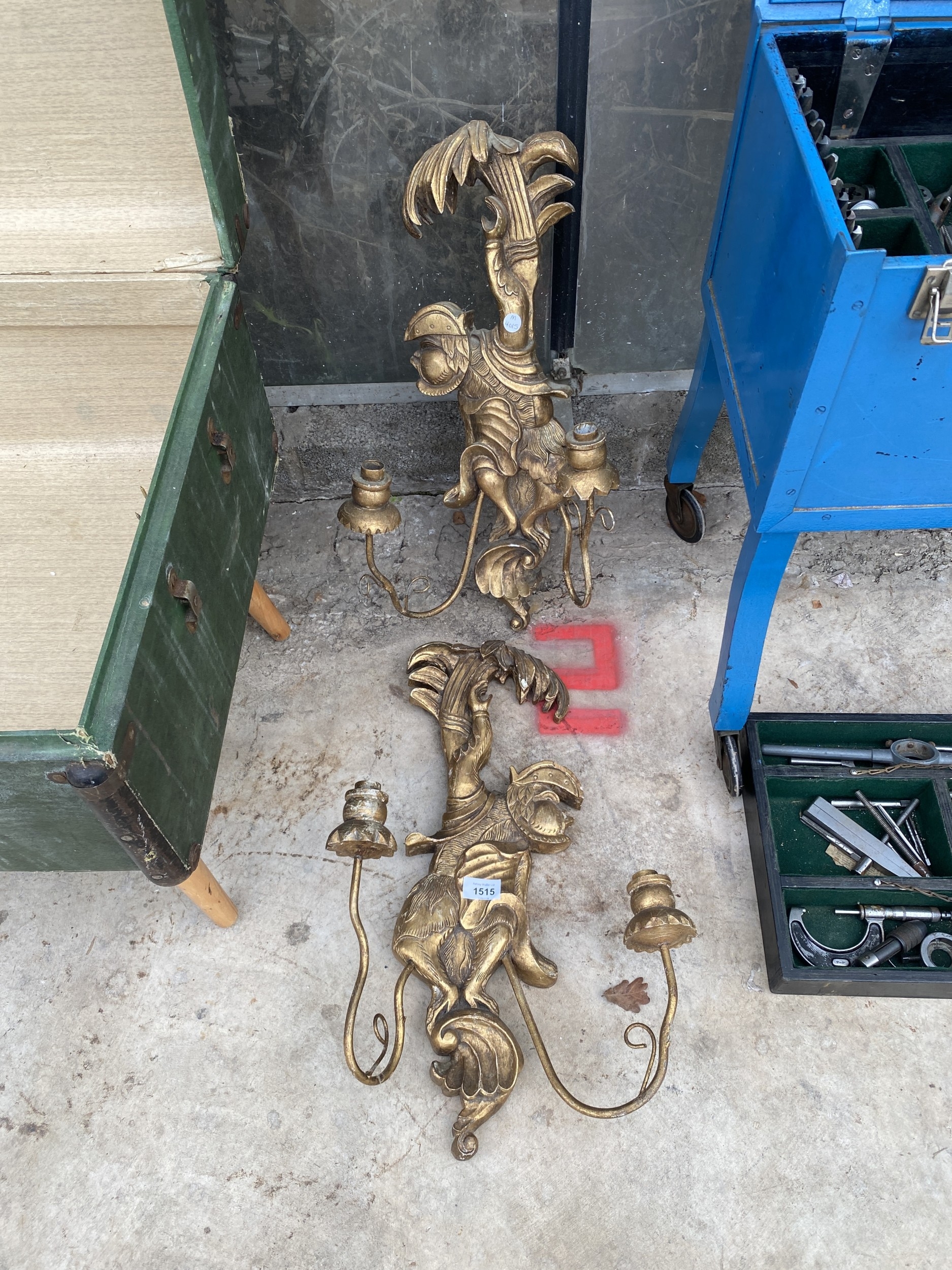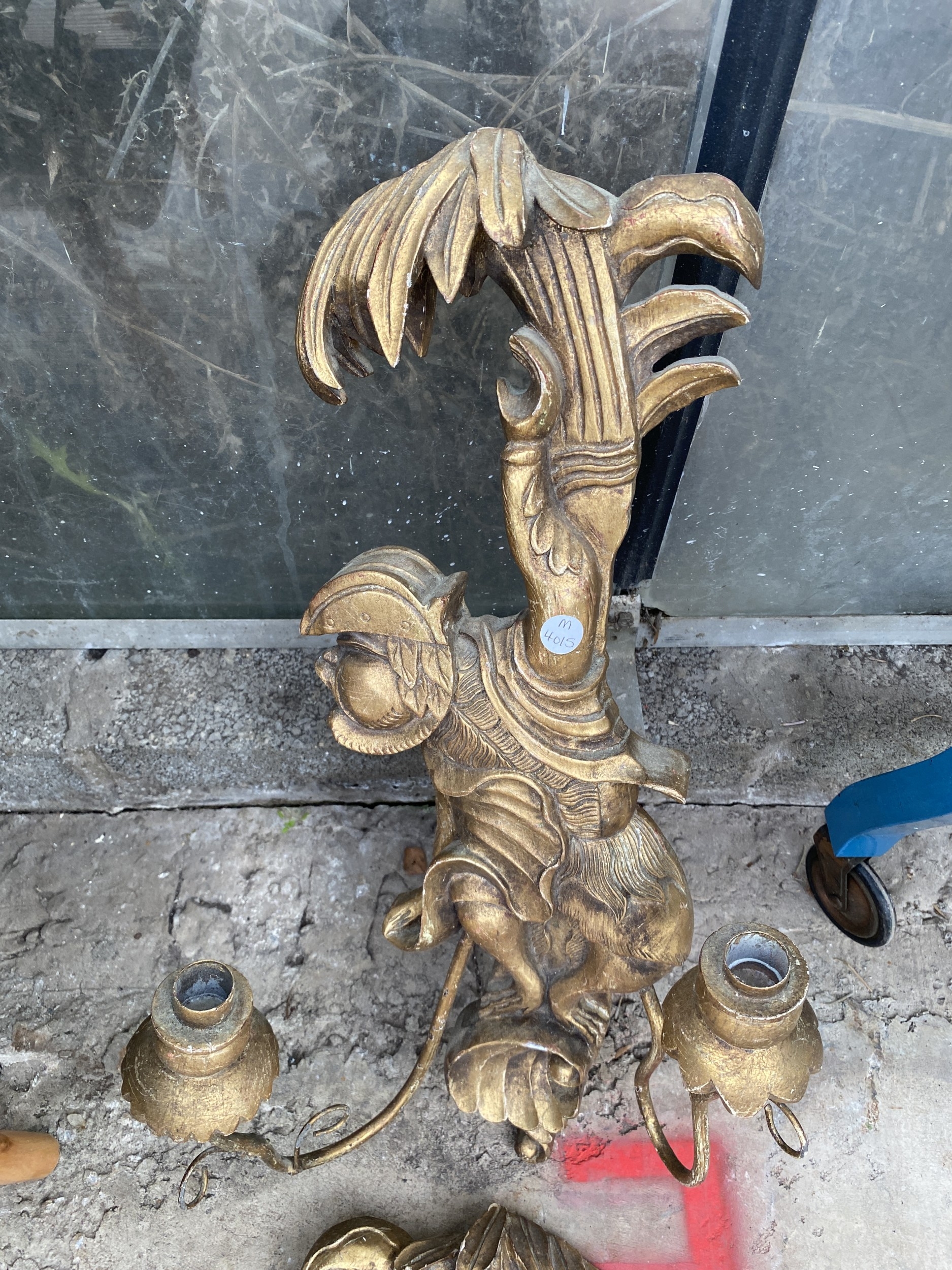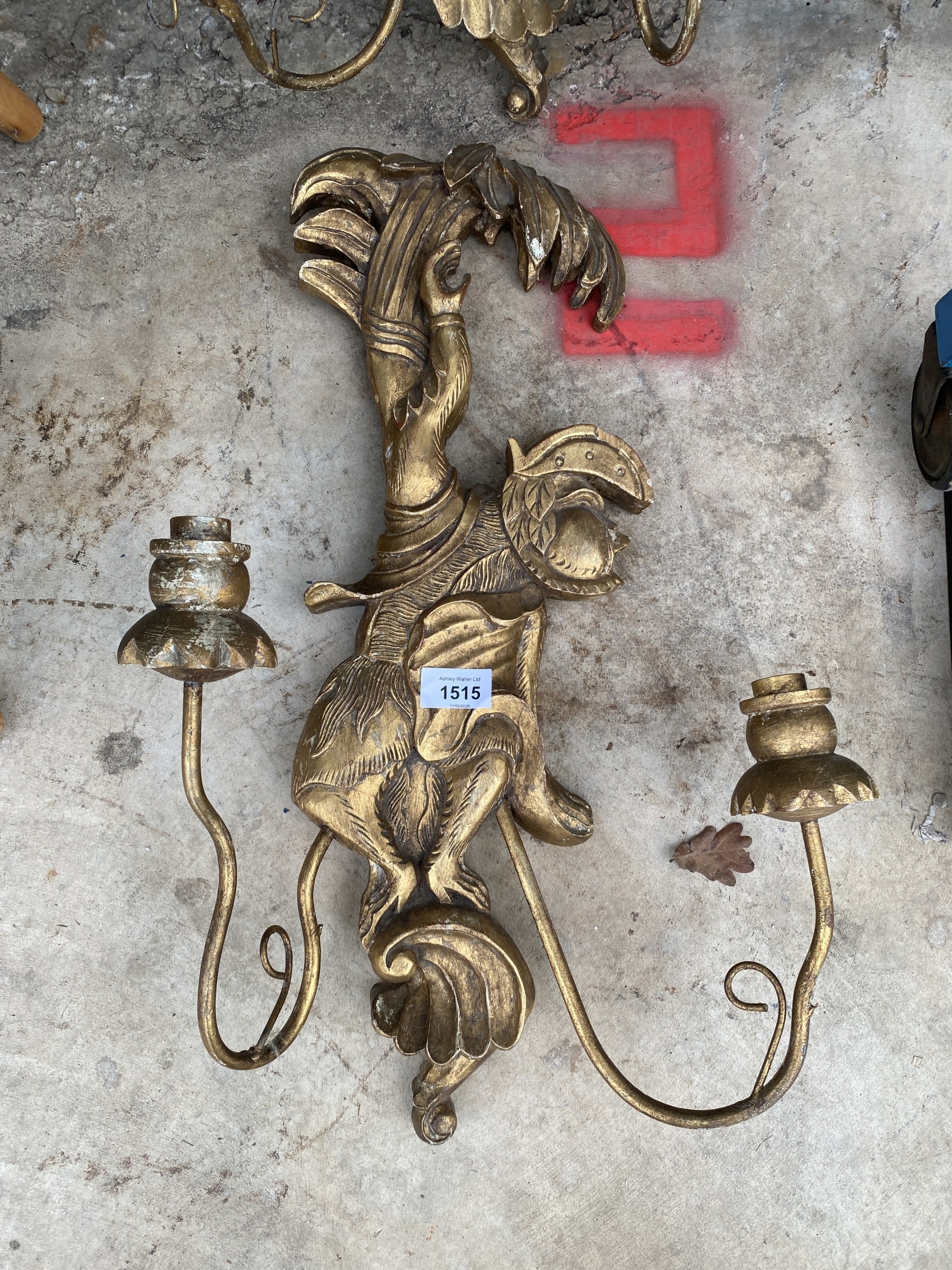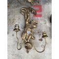 A PAIR OF DECORATIVE WOODEN GILT WALL CANDLE SCONCES WITH MONKEY DETAIL
