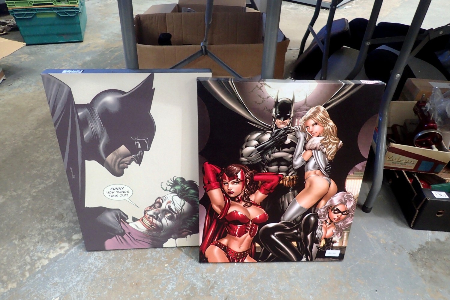 Two Batman pictures on canvas, largest 40 x 50 cm. UK P&P Group 2 (£24+VAT for the first lot and £5+VAT for subsequent lots)