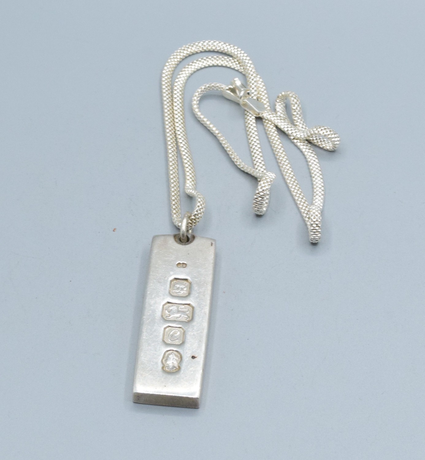 925 silver full hallmarked silver Ingot on a New 925 silver snake skin design neck chain of 45cm long