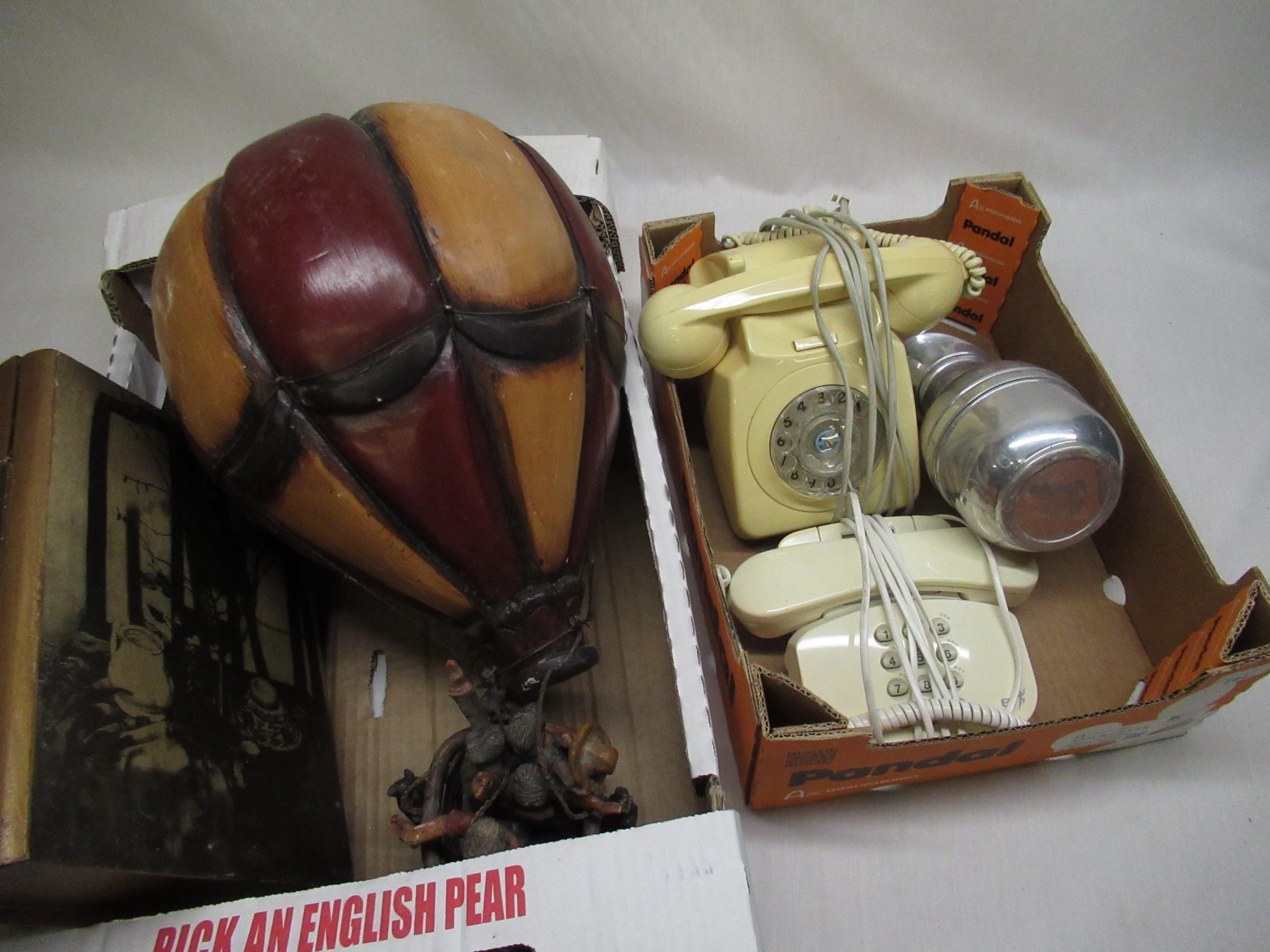 Vintage BT telephone in ivory finish, 1980's BT duet 200 telephone, thermos no. 45 aluminium flask, hanging bloom ornaments, etc (2 boxes)