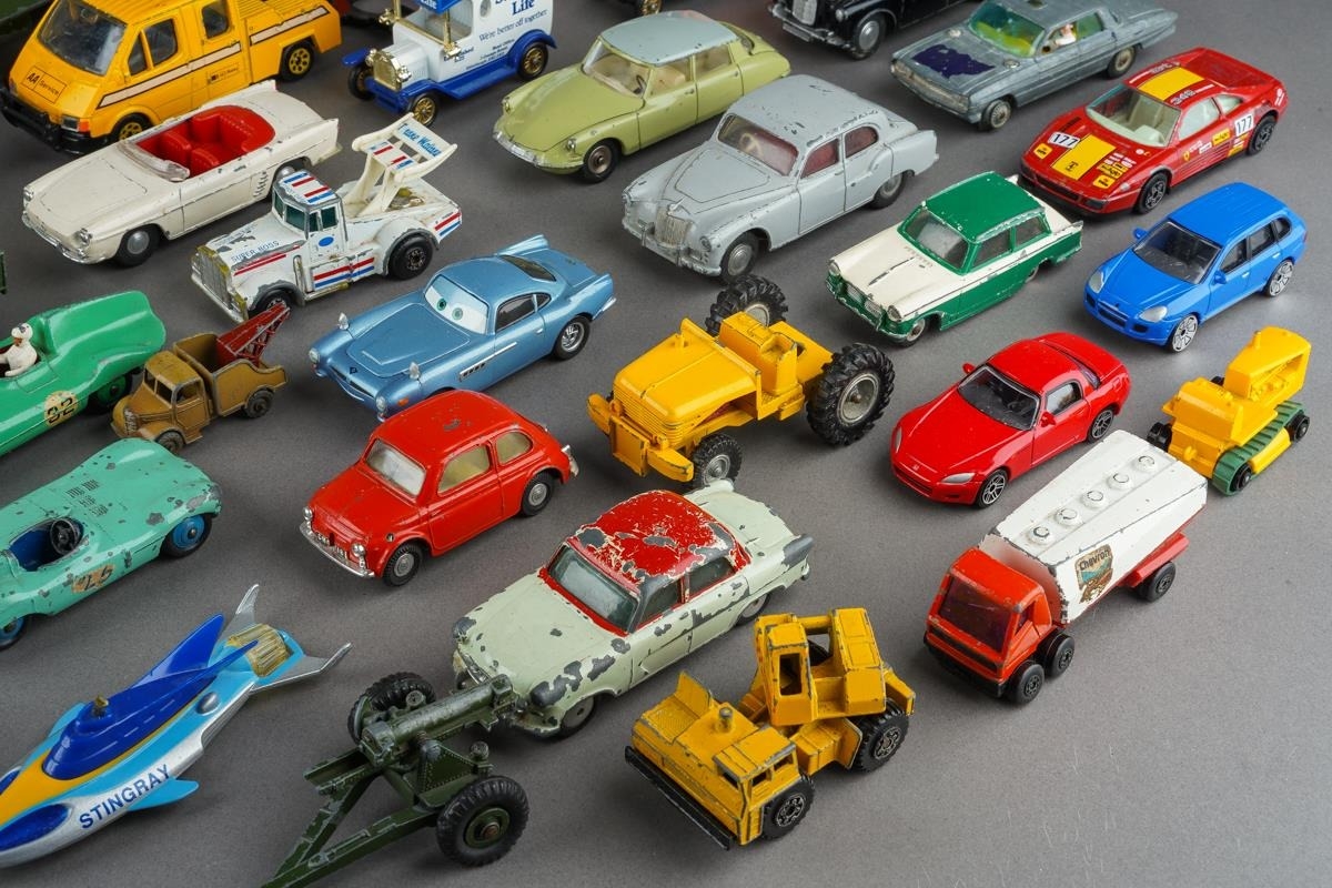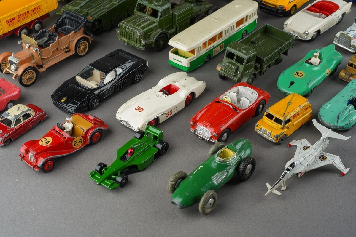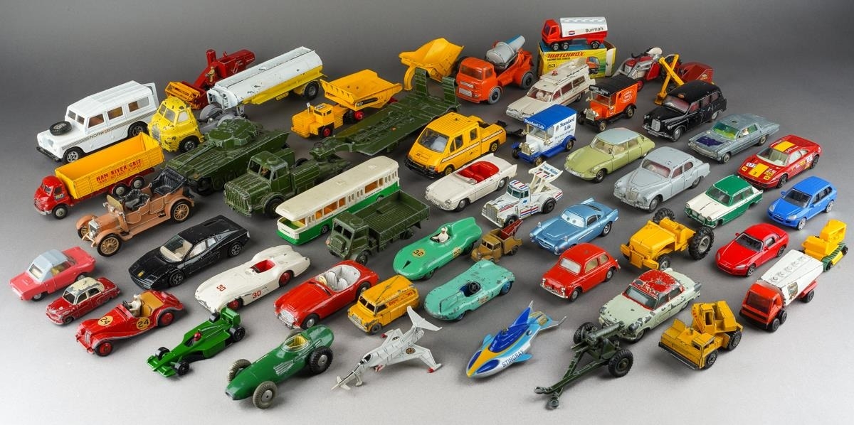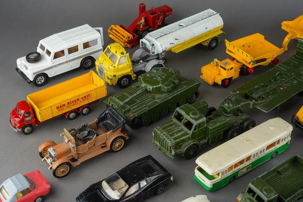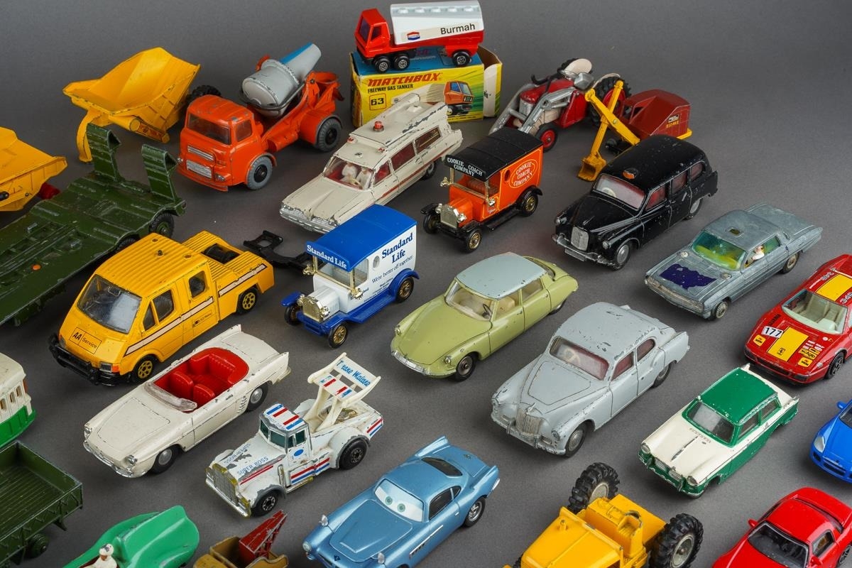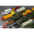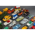 A quantity of playworn assorted die cast vehicles, including Spot-On, Dinky, Corgi, Lledo, Macdonalds, etc and a boxed Matchbox Burmah lorry