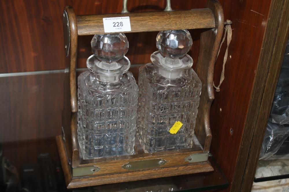 A TWO BOTTLED TANTALUS, NO MAKER'S MARK