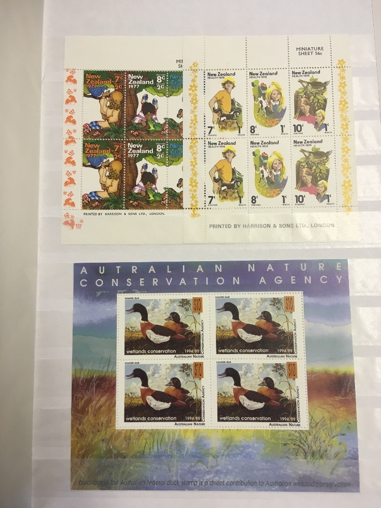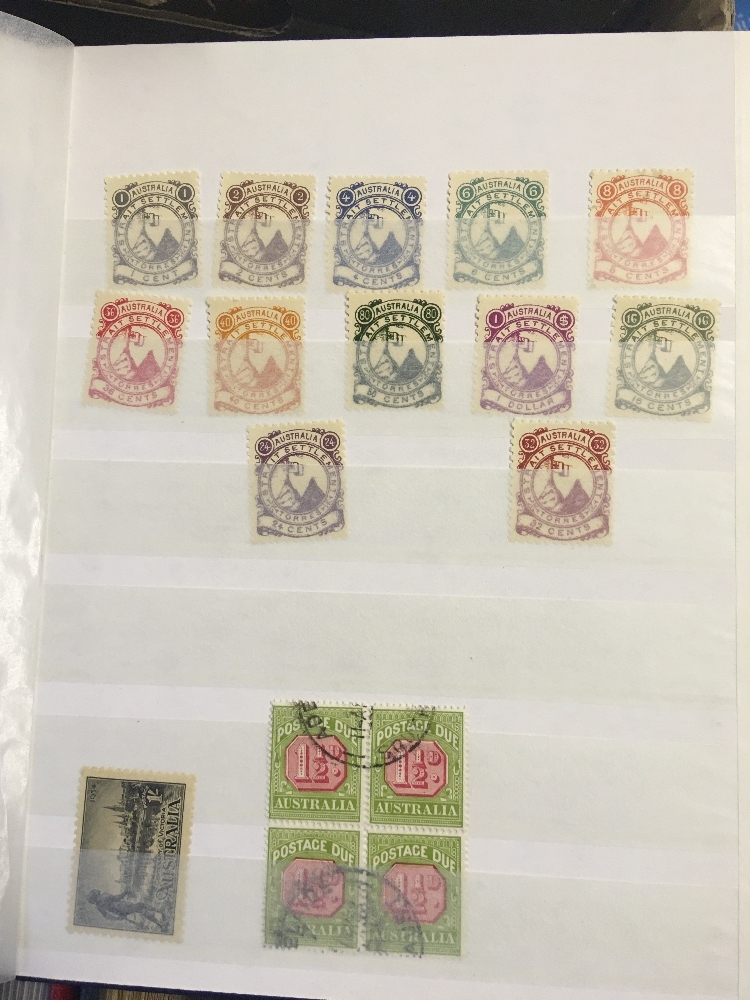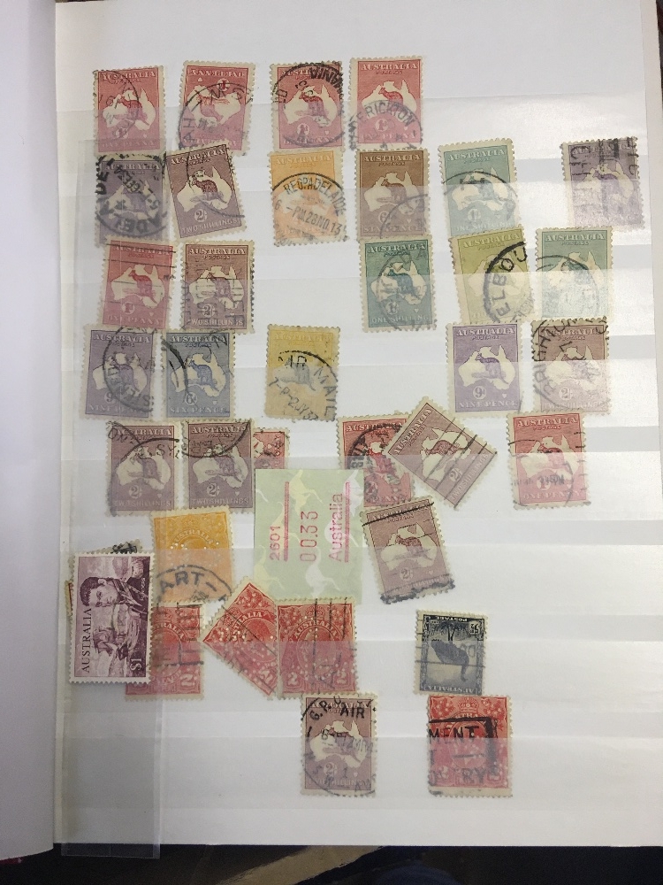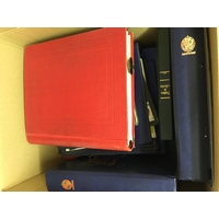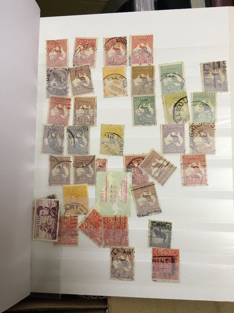STAMPS BRITISH COMMONWEALTH, box with three albums, five stockbooks and a folder. Useful U/M modern thematic sets & miniature sheets, with Bahamas, Norfolk Islands, Gibraltar, Malta etc. Australia with useful Roos to 10/- and modern sets. Concorde covers & stamps etc. Lots of material!