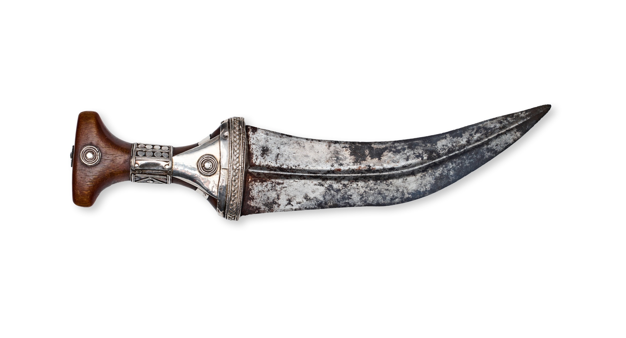 A RARE INSCRIBED SAUDI ARAB JAMBIYA DAGGER AND SCABBARD TAKEN AT THE BATTLE OF TALNEIR 1818