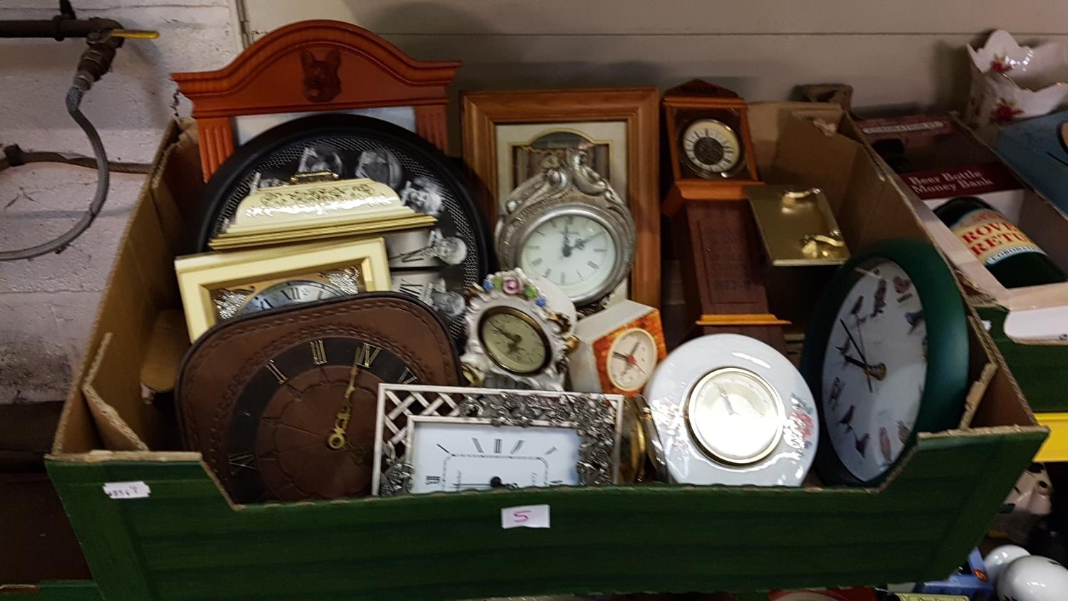 Box of Assorted Clocks Including Timemaster, Harrods, London Clock Co etc.