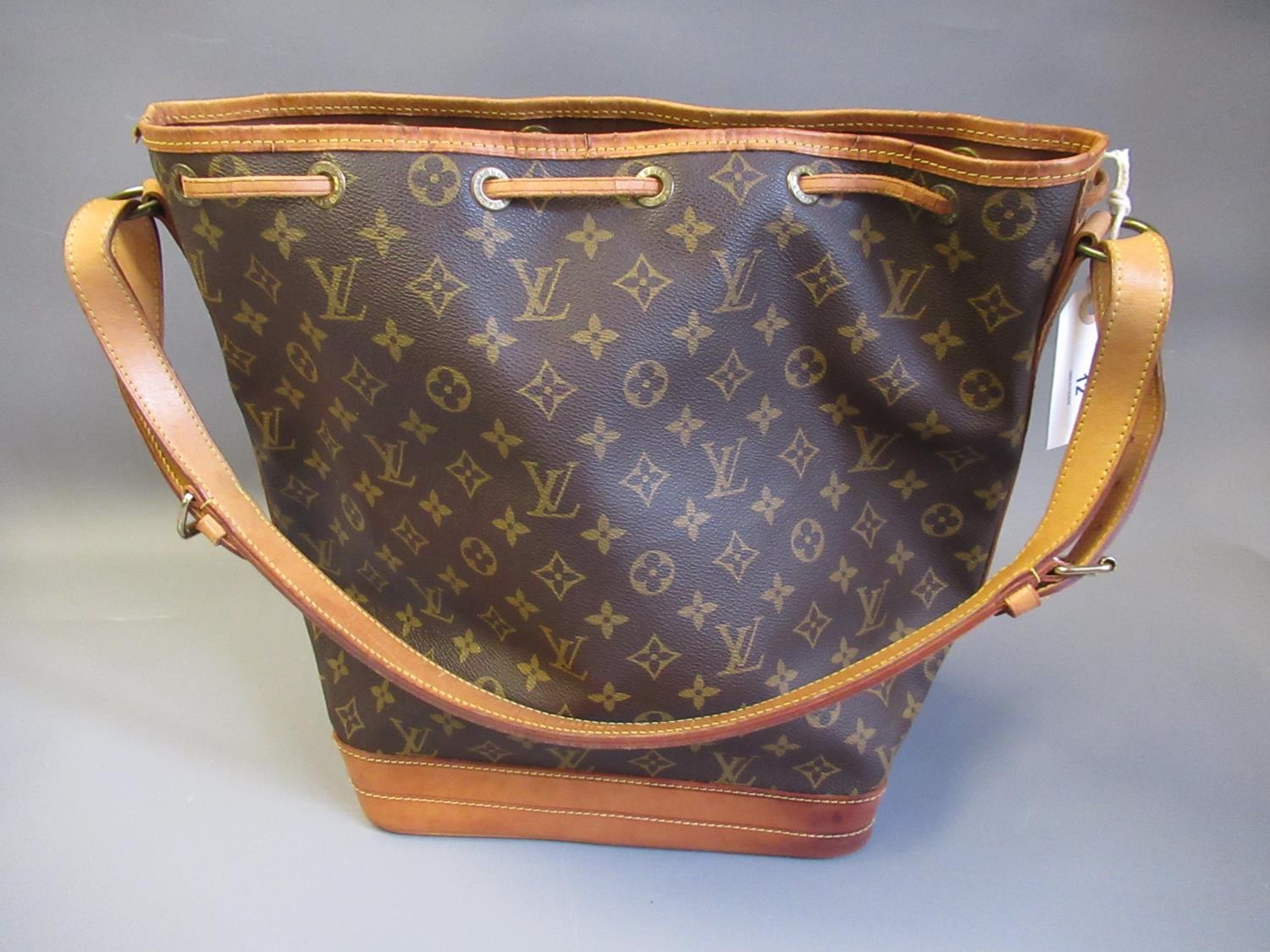 Louis Vuitton, ladies bucket bag with leather strap and leather tie top