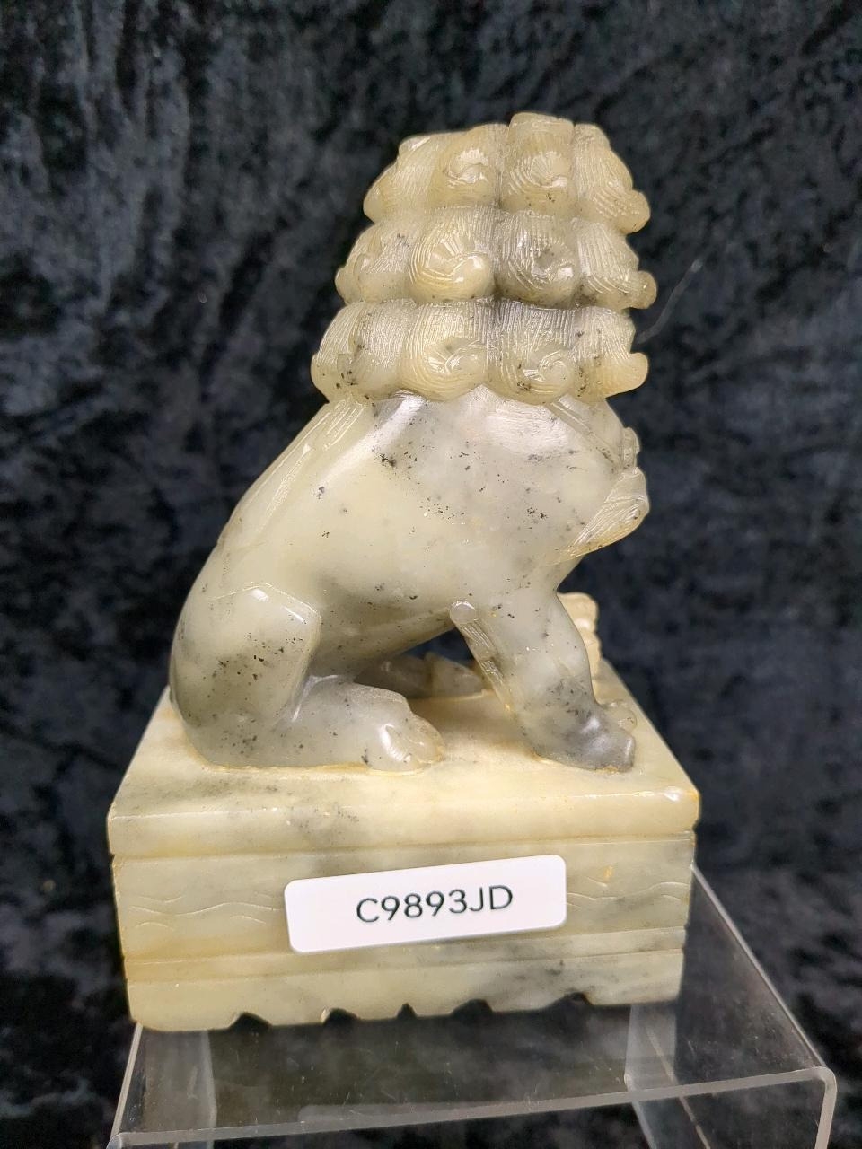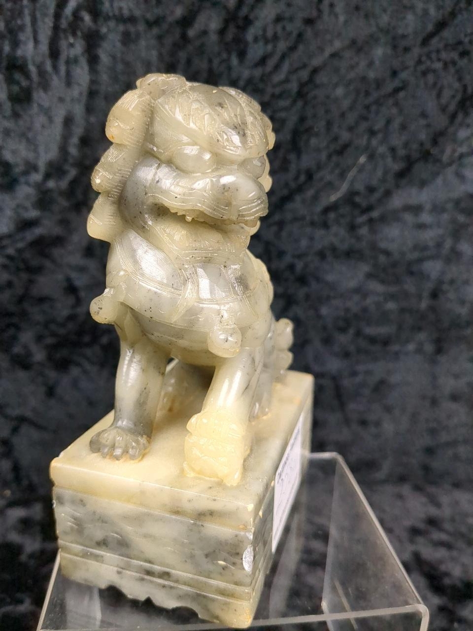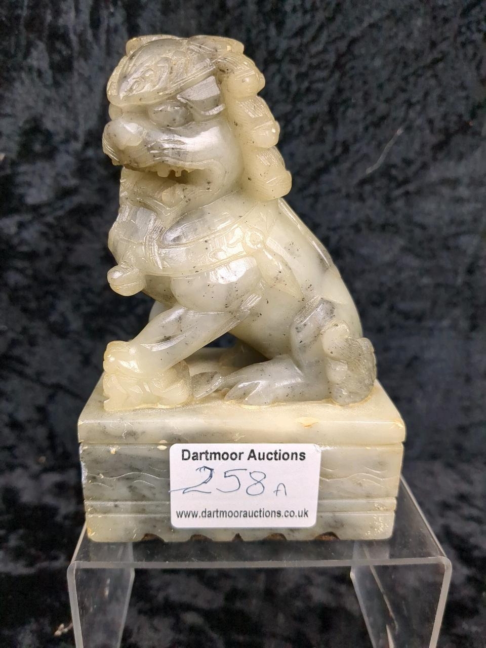 Hand carved jade figurine of a foo dog. Approx H13cm.