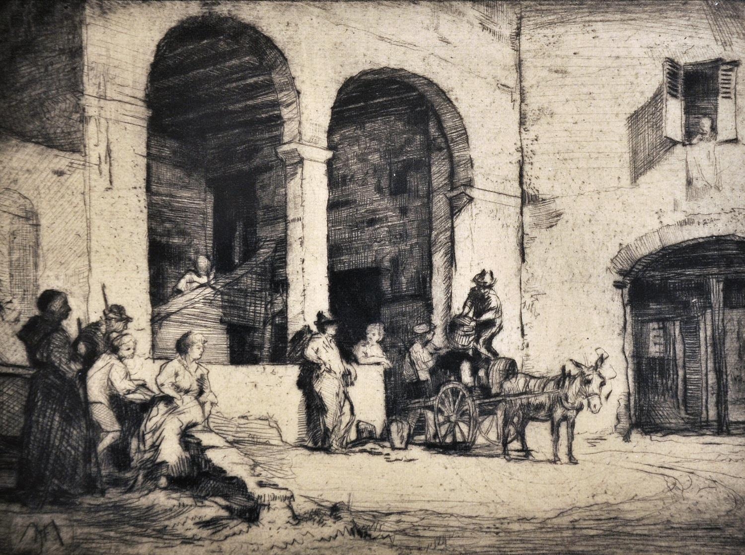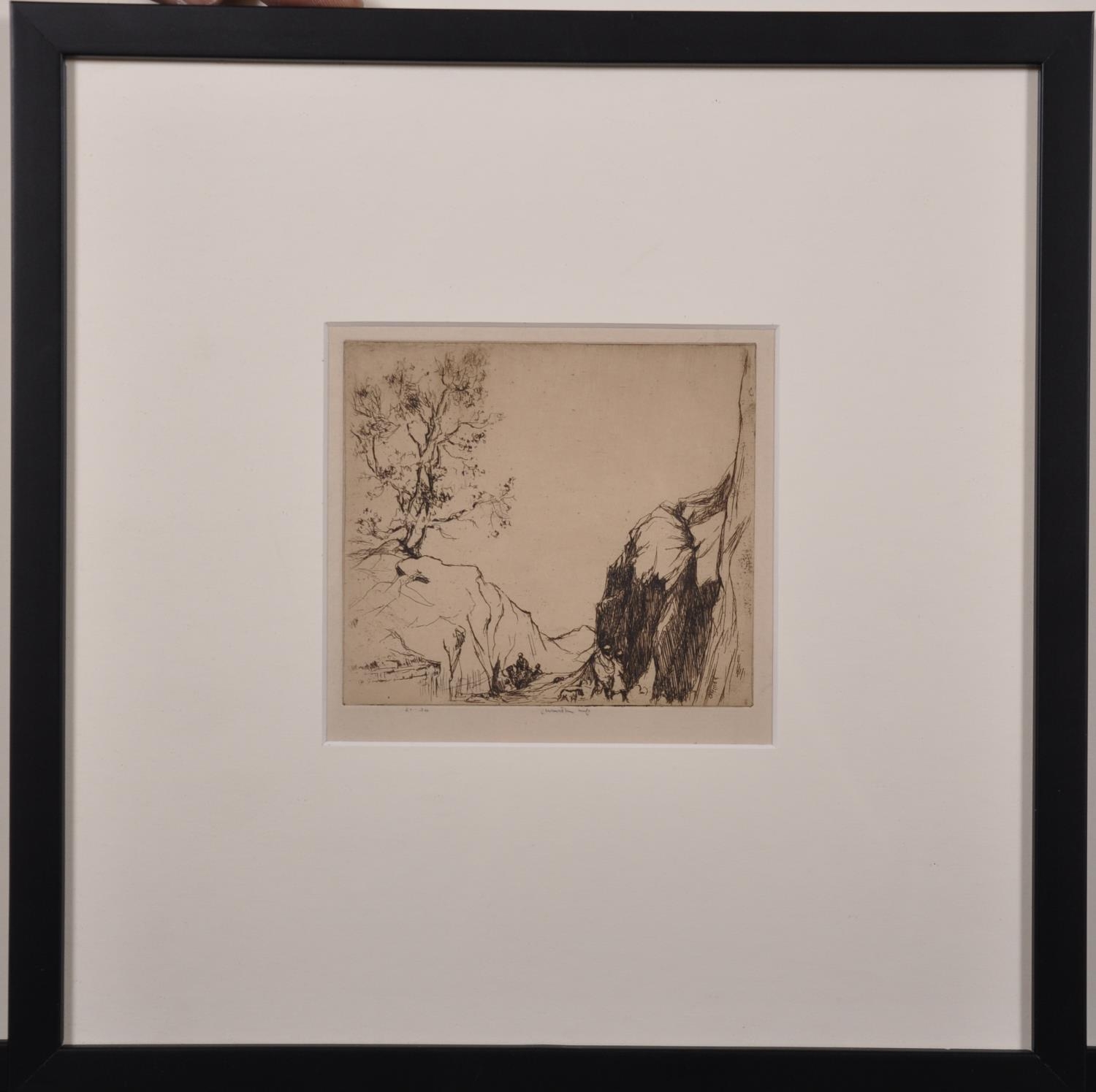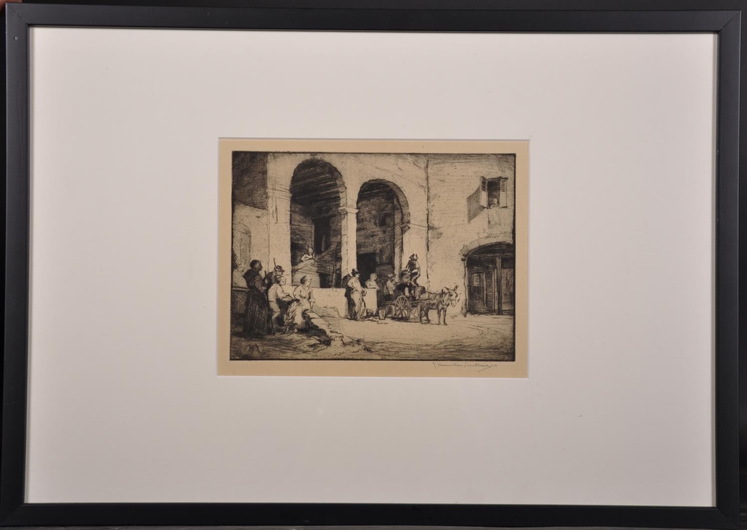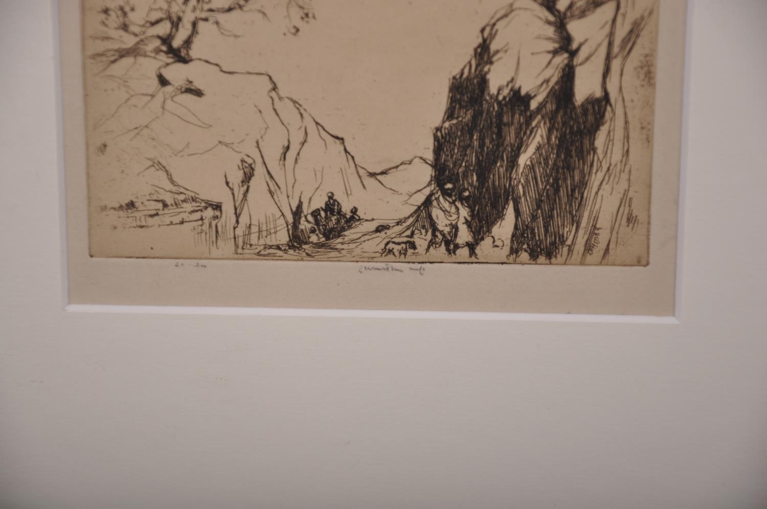 James Hamilton Mackenzie (1875-1926) British. “Sienese Water Carrier”, Etching, Signed in Pencil, 5.5” x 7.5” (14 x 19cm) together with another Etching by Ernest Stephen Lumsden (1883-1945) British, “The Pass”, two (2)