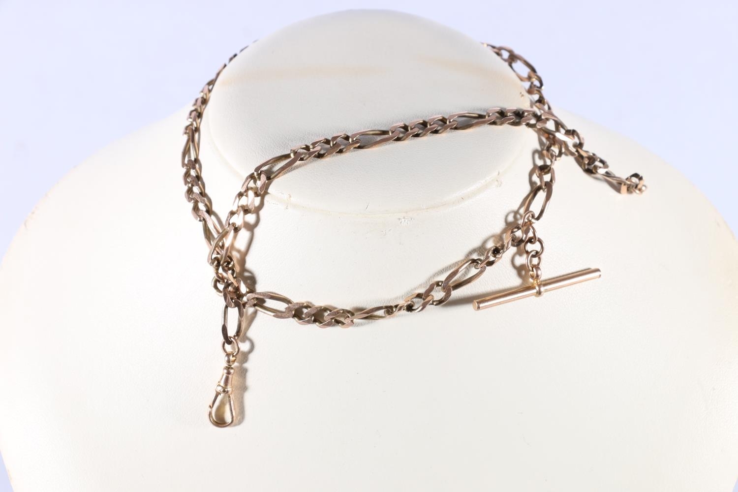 9ct rose gold faceted curb link watch guard, 18.9g