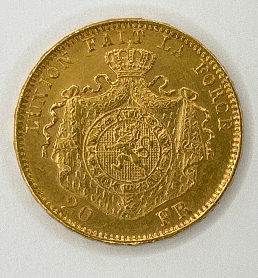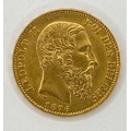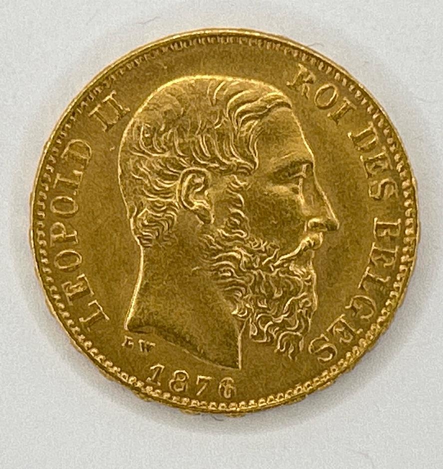 1876 Belgium 20 Francs gold coin, 6.5g / SF