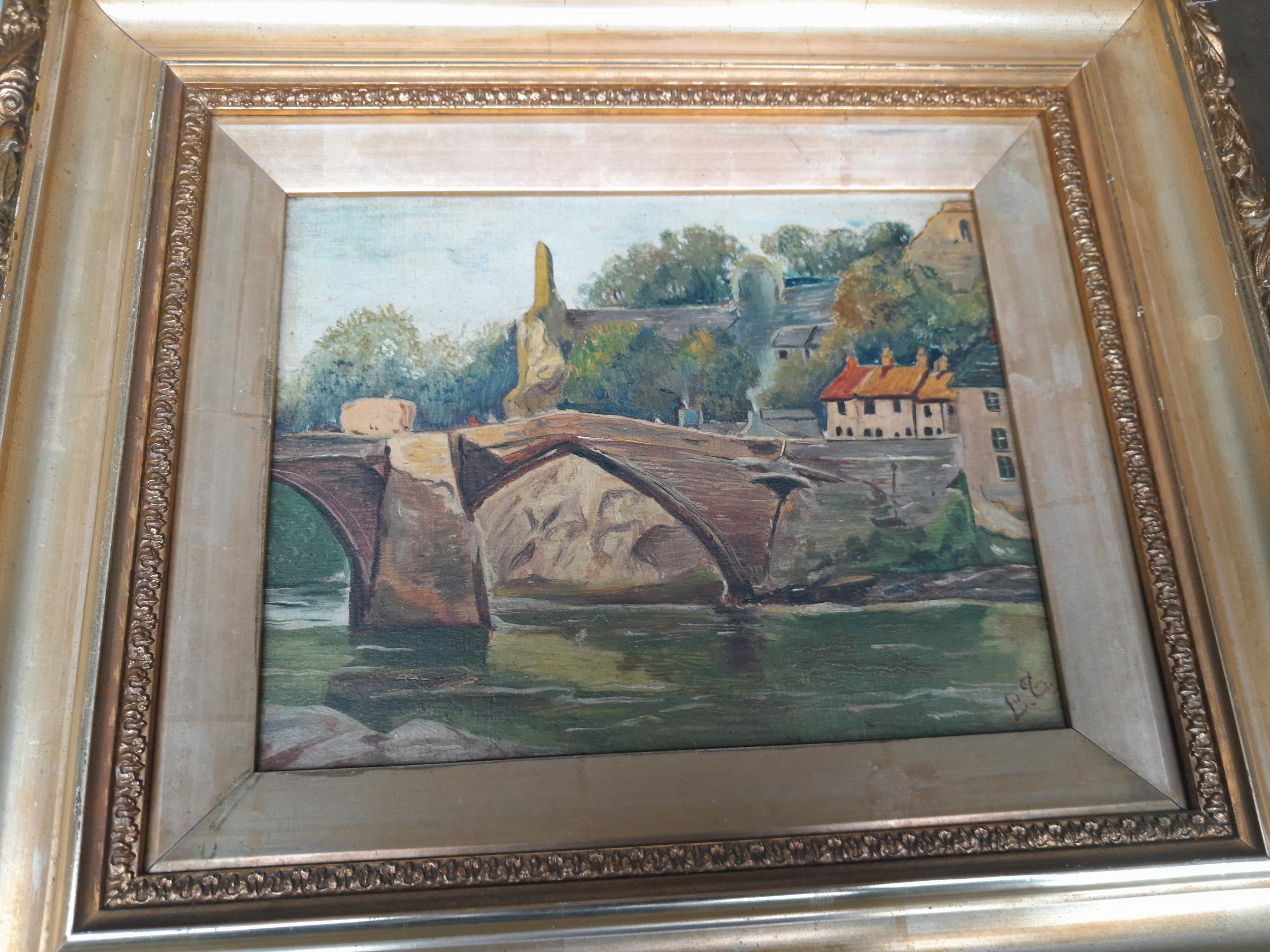 Early 20th century oil on canvas initialled in giltwood frame