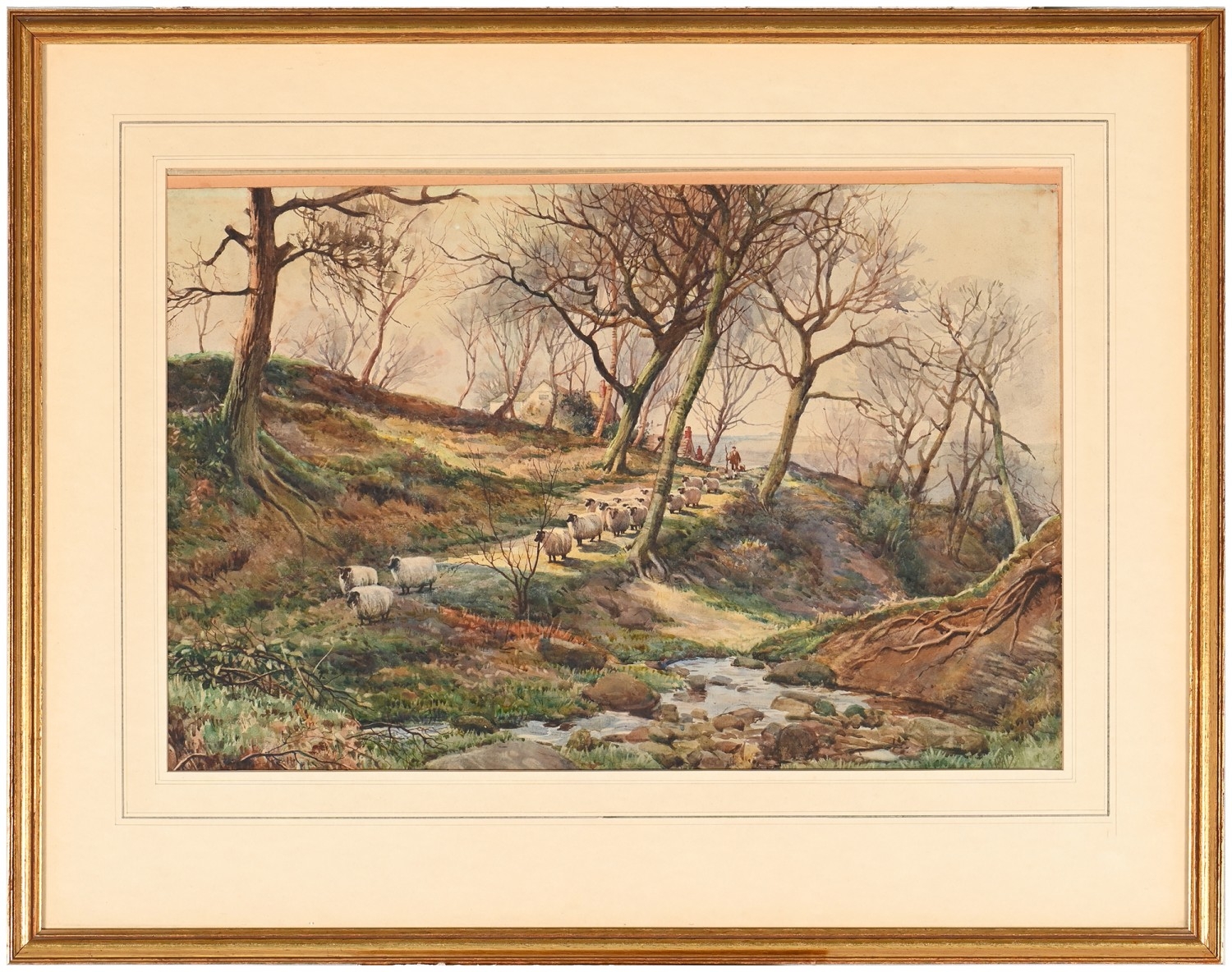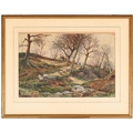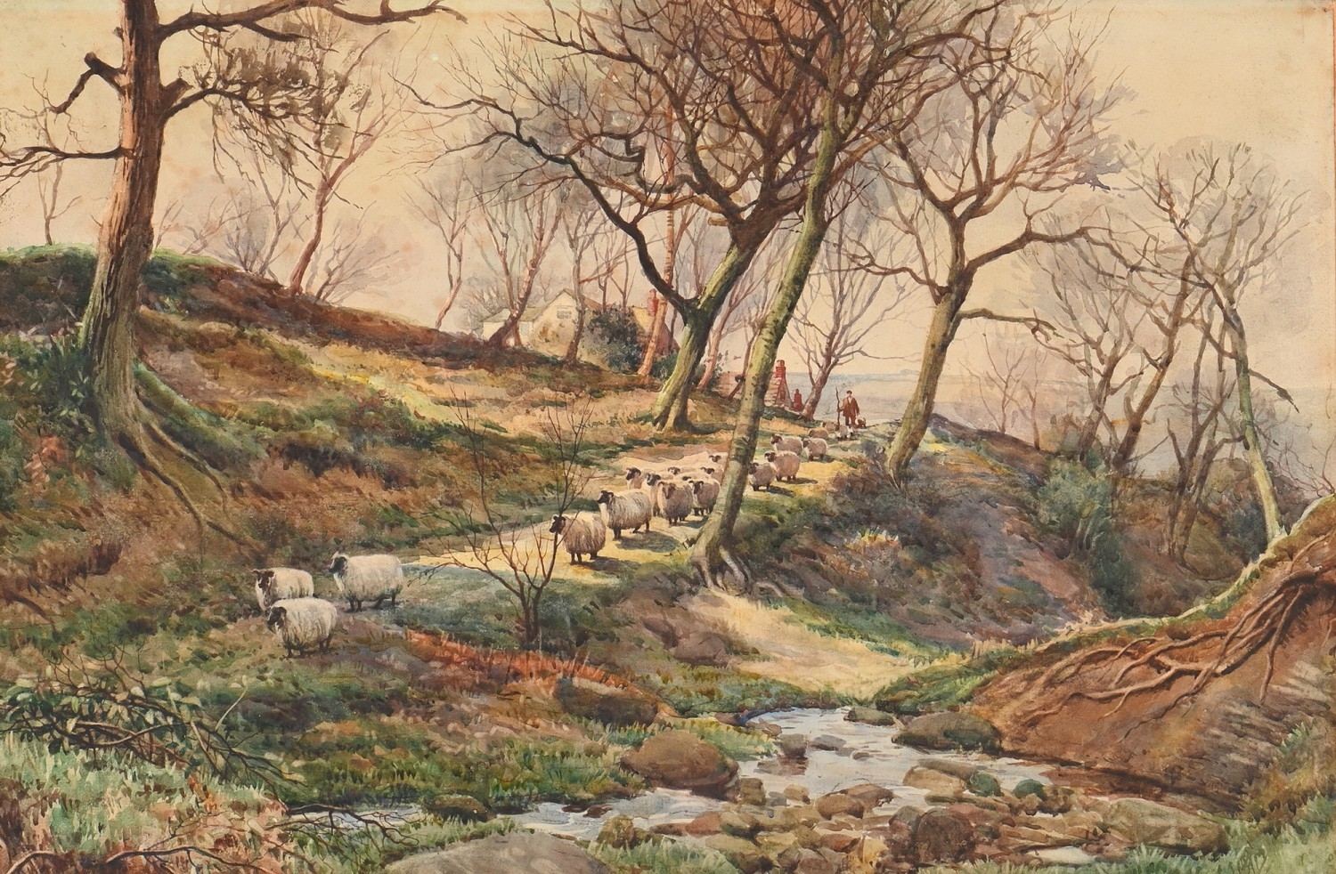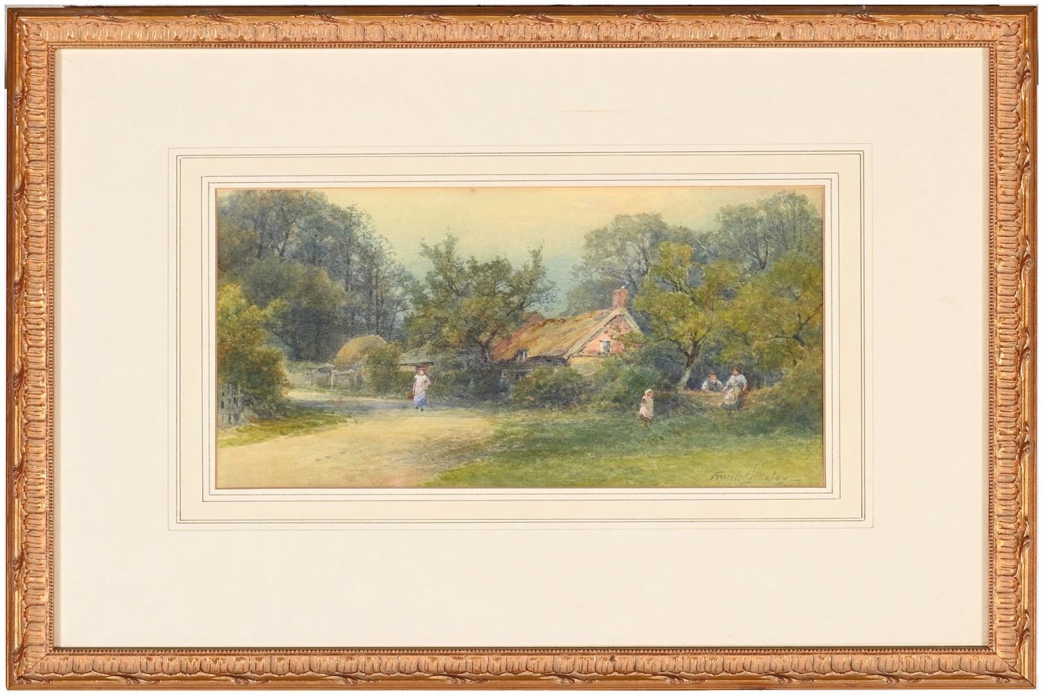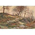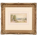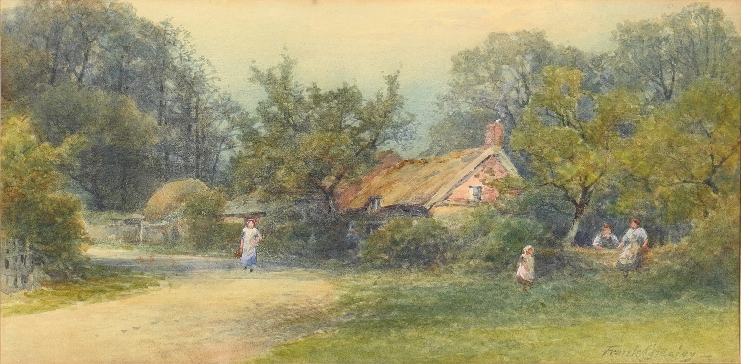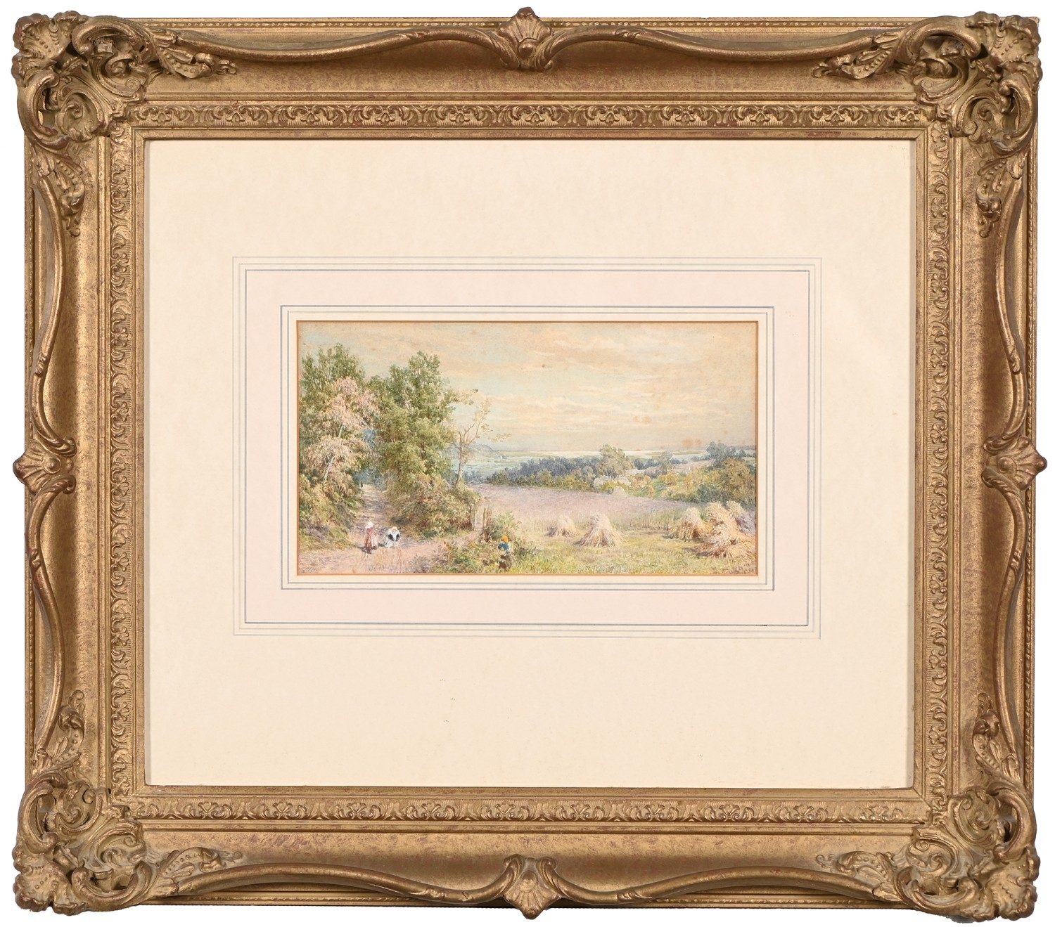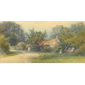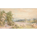 Victorian School - Figures and Haystacks by the Coast, monogrammed J.T.H., dated March 1884 verso, watercolour, 13 x 24cm; another three watercolours, mixed hands, subjects and sizes, (4)
