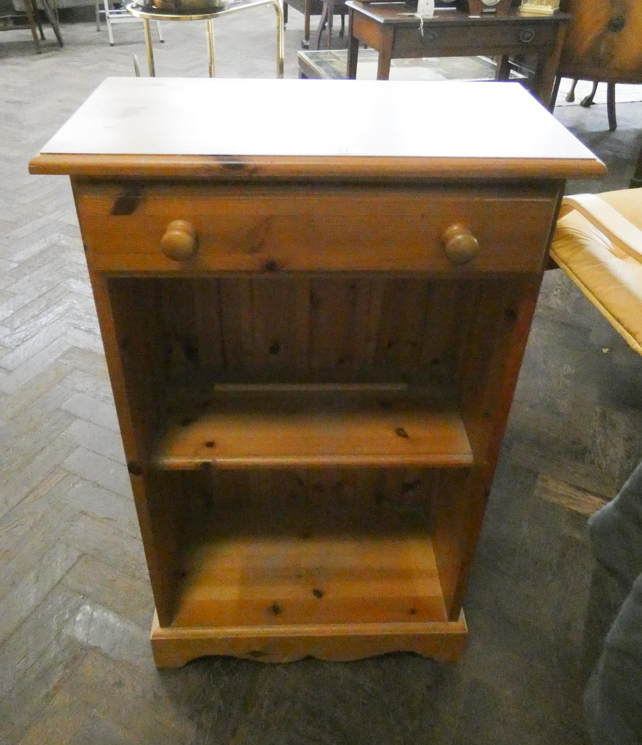 A small modern pine open bookcase fitted one drawer, 21" wide