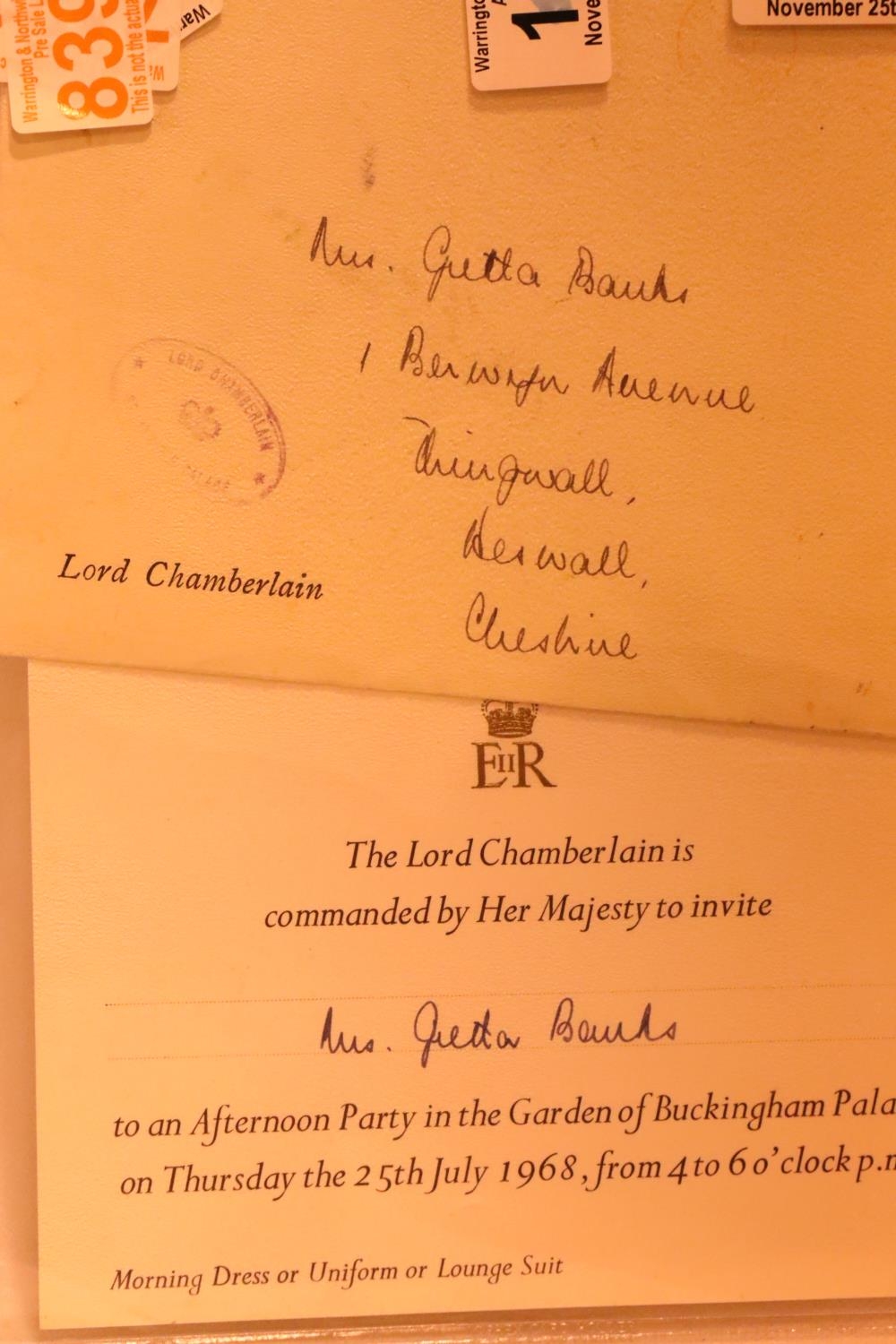 1968 invitation to a Buckingham Palace Garden Party, with envelope from the Lord Chamberlain. P&P Group 1 (£14+VAT for the first lot and £1+VAT for subsequent lots)
