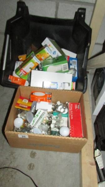 Two boxes of assorted light bulbs.