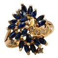 Having marquise cut blue spinels (3mm x 2mm) set with brilliant round cut diamonds (largest: 1.5mm) pierced open front, gallery, shoulders and back.