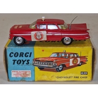 Vintage boxed Corgi model 437 Superior Ambulance on Cadillac Chassis, blue/yellow box. Model is very good with little sign of use in a complete box with some storage wear.