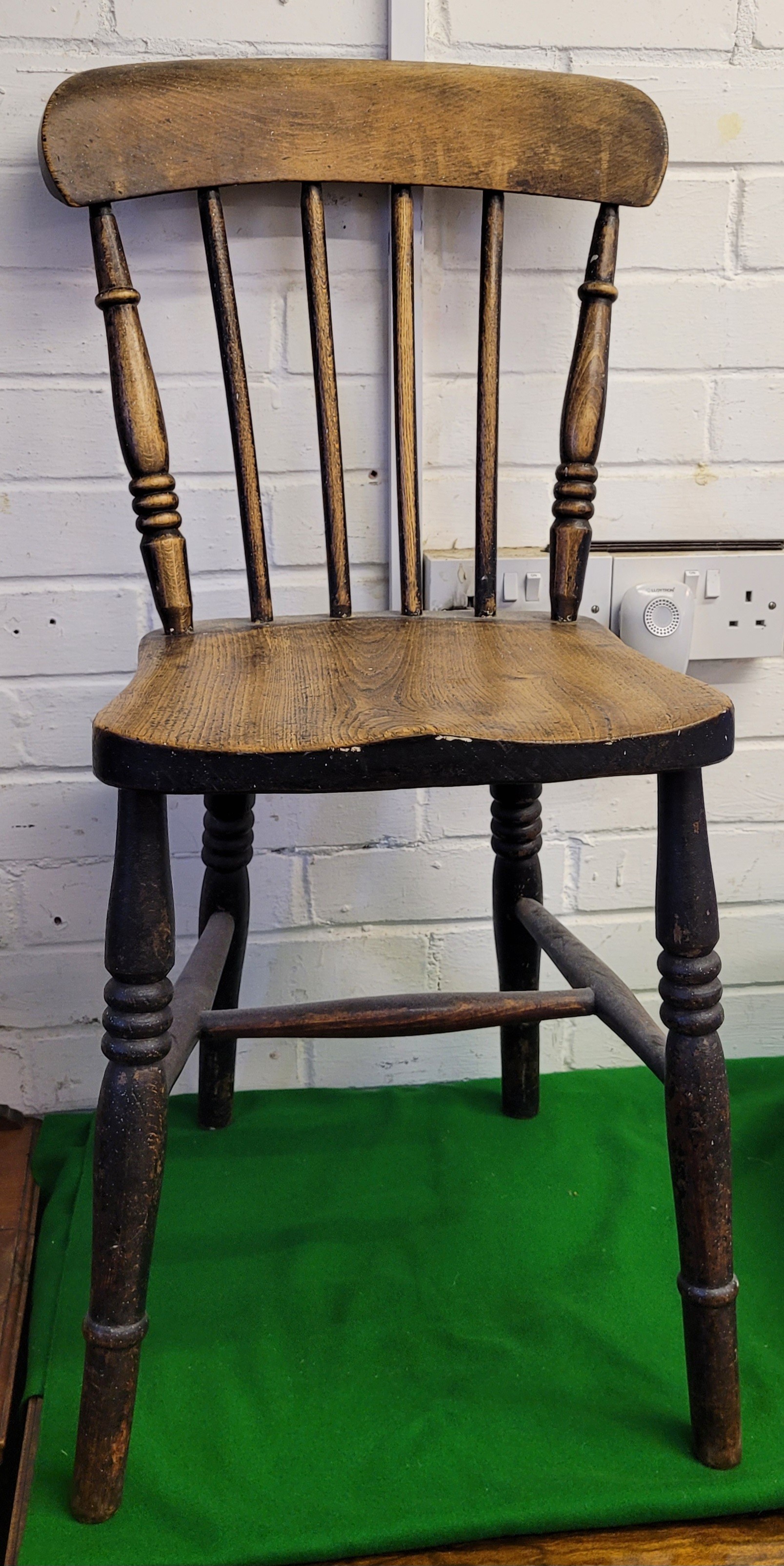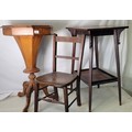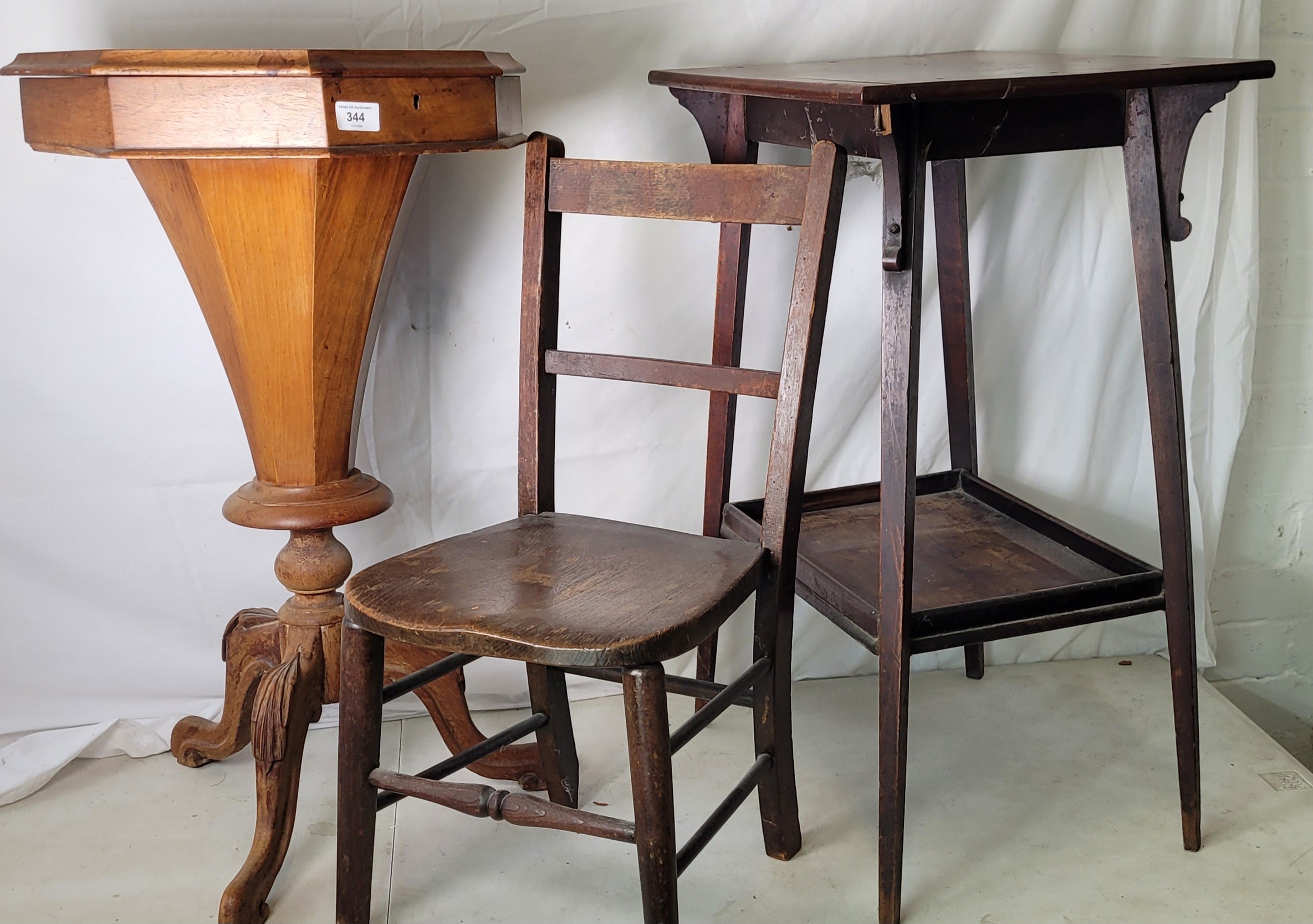 Victorian sewing table, small Childs chair, satin walnut bedside cupboard, two tiered occasional table and a country style stickback chair