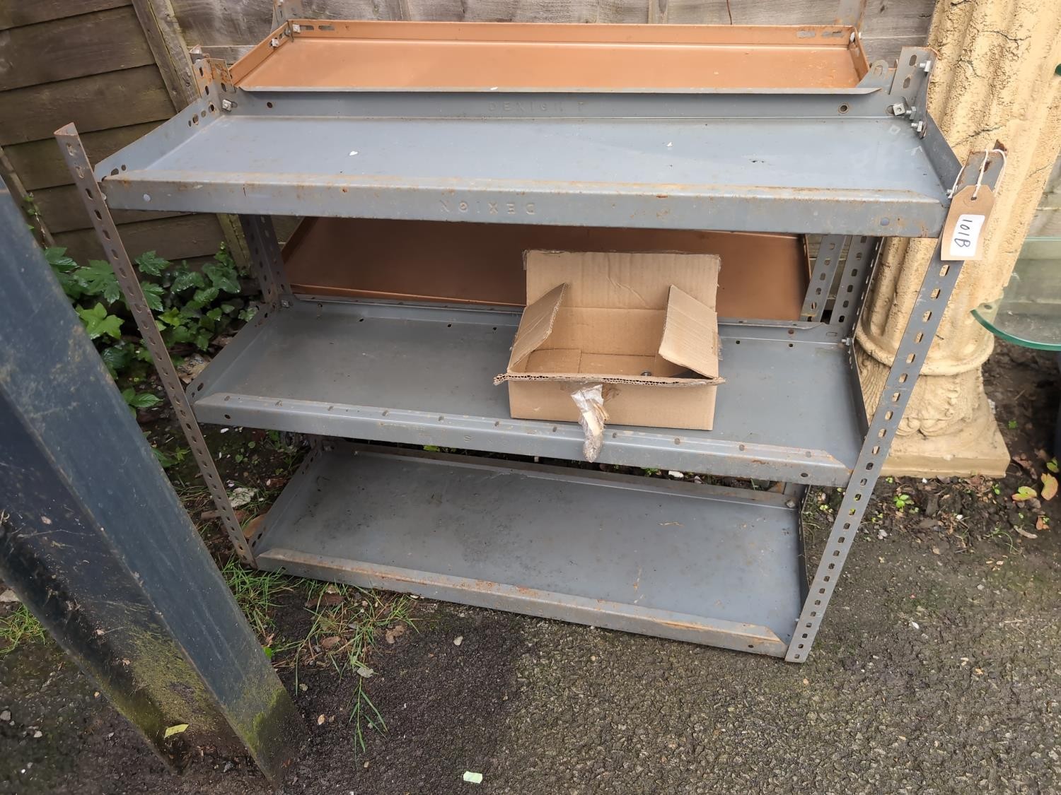 2 x 3-shelf metal racking with fixings. W93cm D31cm H77cm.