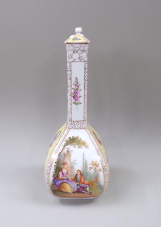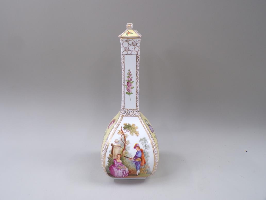 DRESDEN HELENA WOLFSOHN PORCELAIN QUATREFOIL VASE, 34CM H, A/F