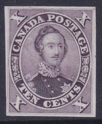 1859 Die proof 10c Prince Albert in Lilac on thin paper, Four full margins very fine. Unitrade 17TC.