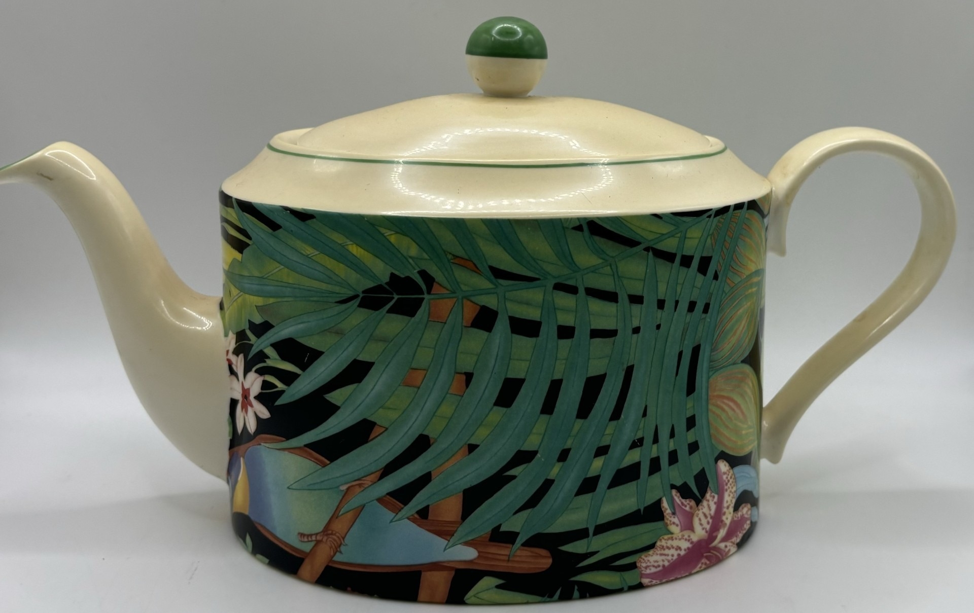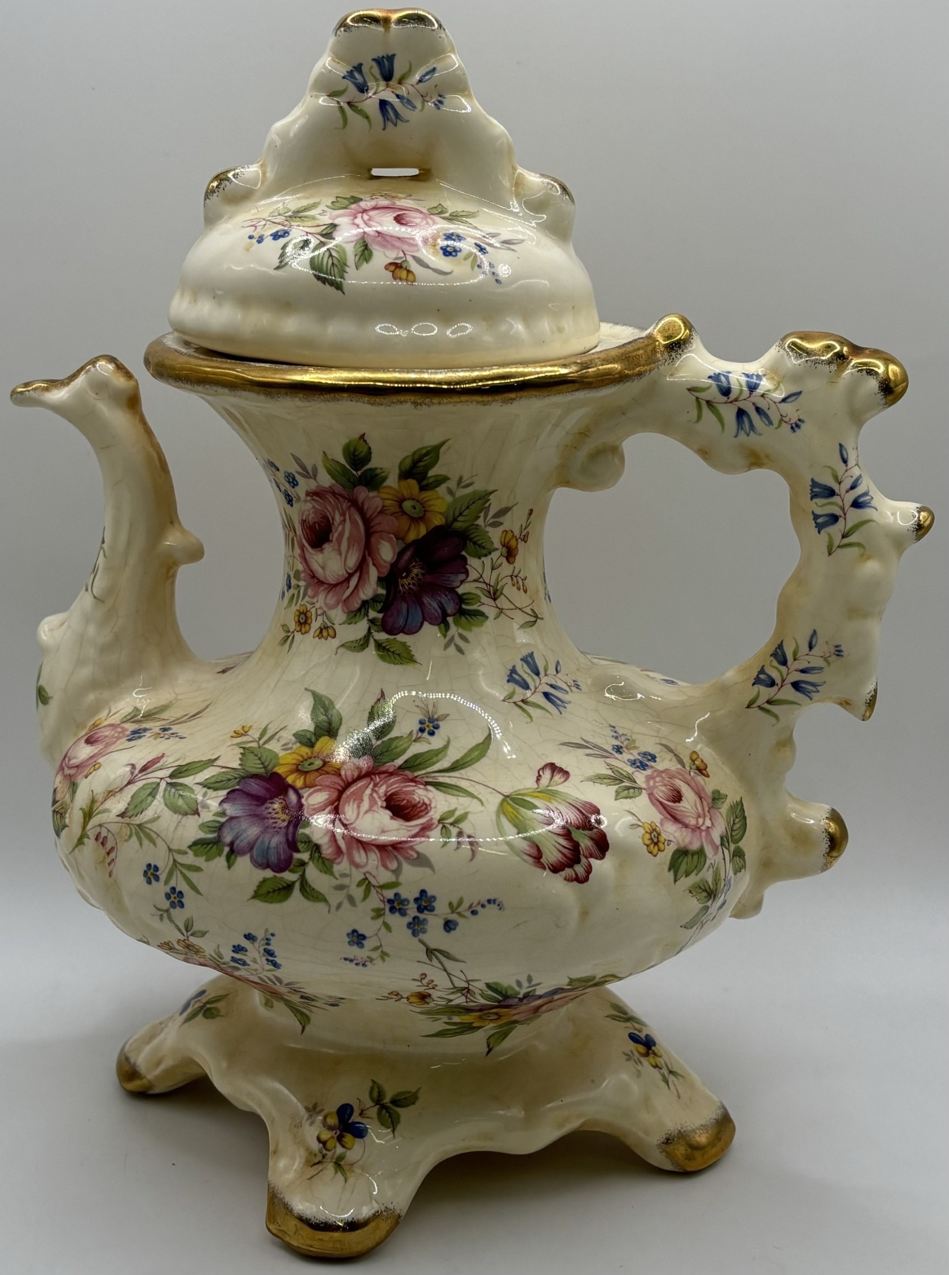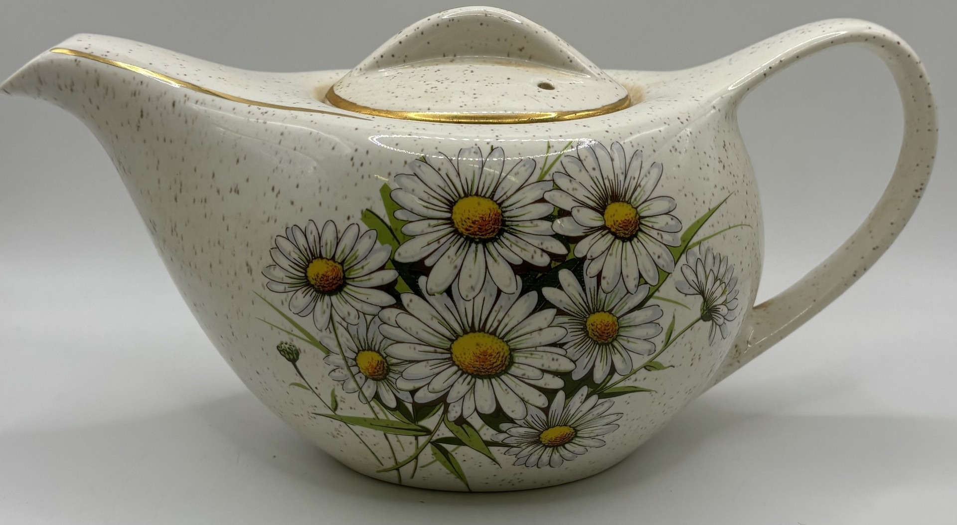 Collection of 5 vintage teapots. Makers include James Kent Old Foley, Arthur Wood, Astbury & Kernewek. Tallest 28cm.