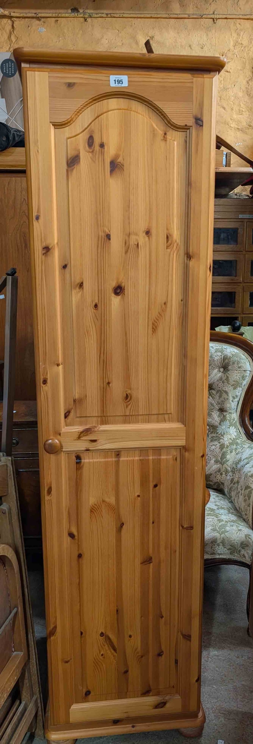 A 47cm modern pine narrow wardrobe with hanging space enclosed by a panelled door, set on bun feet