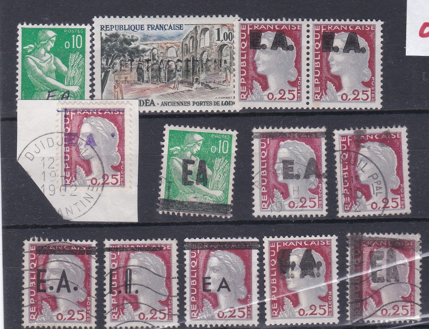Card of 13 x French values opt'd EA in various types - Mint/used