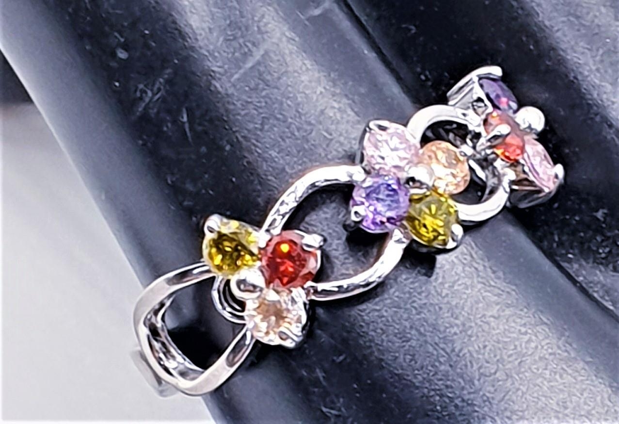 SILVER (925) MULTI STONE SET RING (Size W, Total Weight 3.1 Grams) (Boxed)