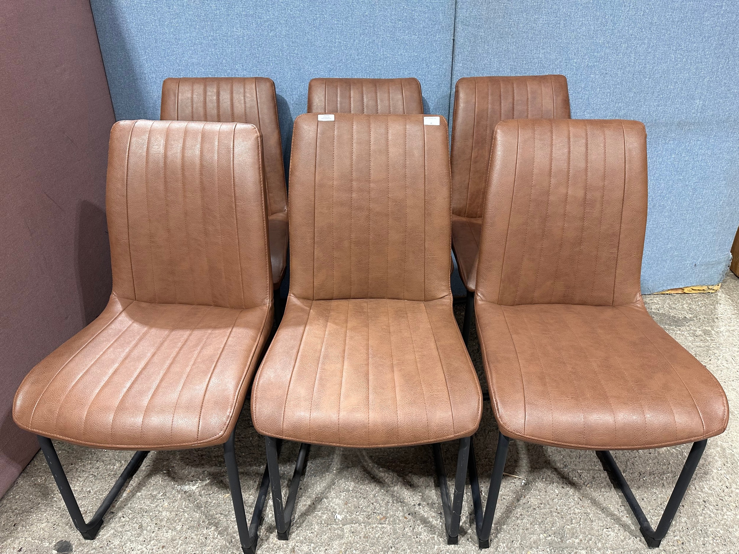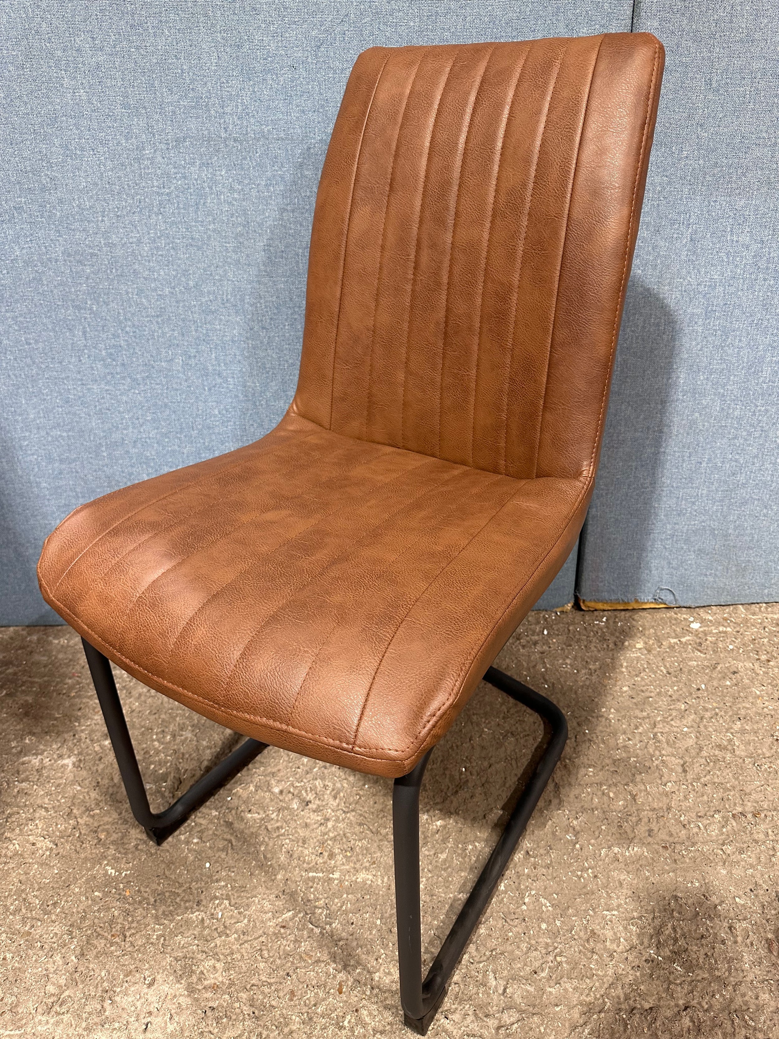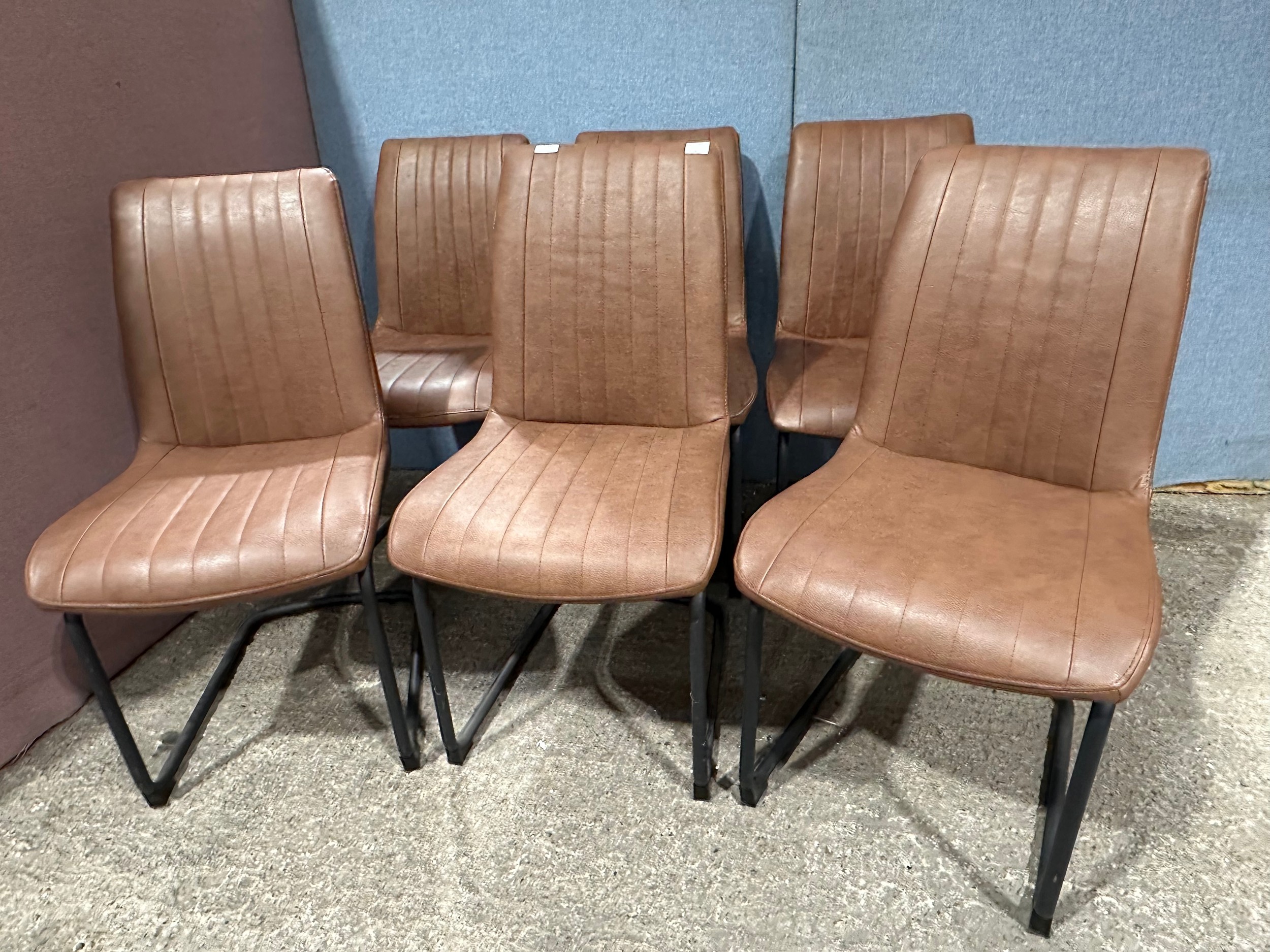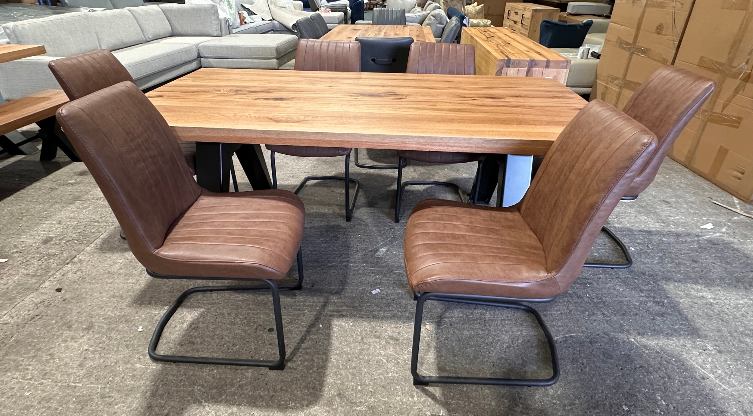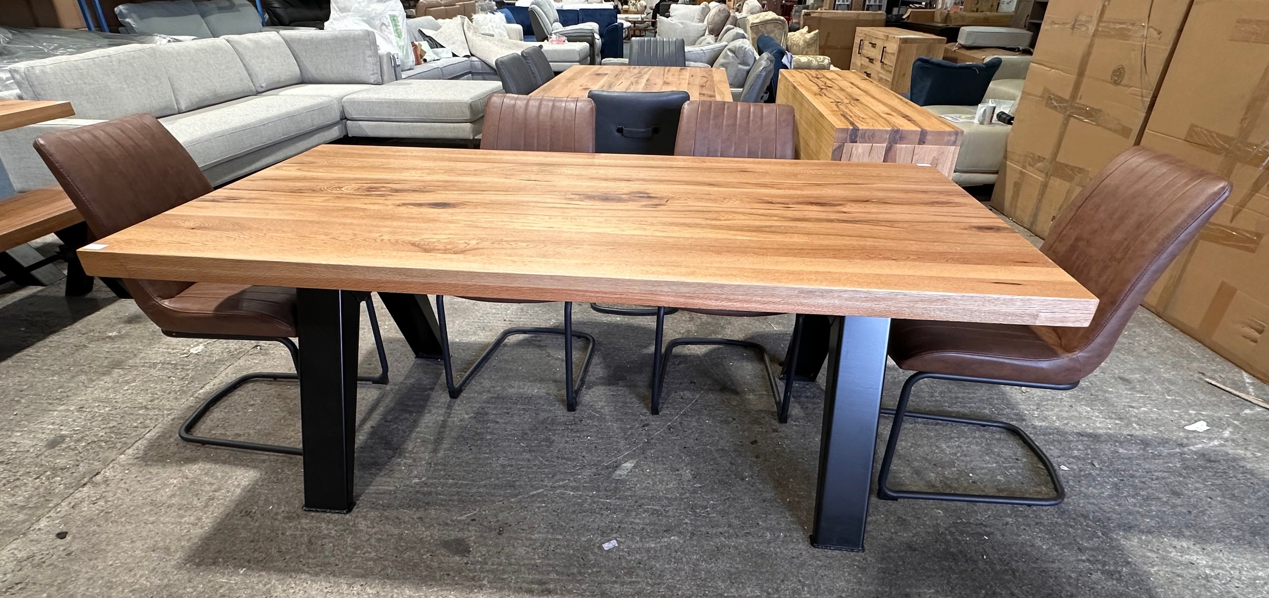 A solid oak 200cm dining table with 6 brown leather dining chairs