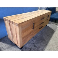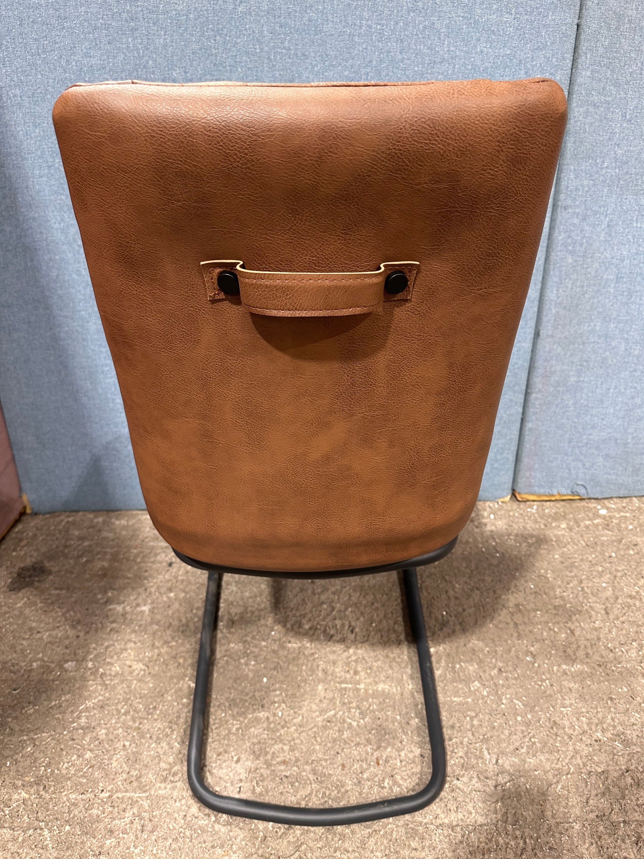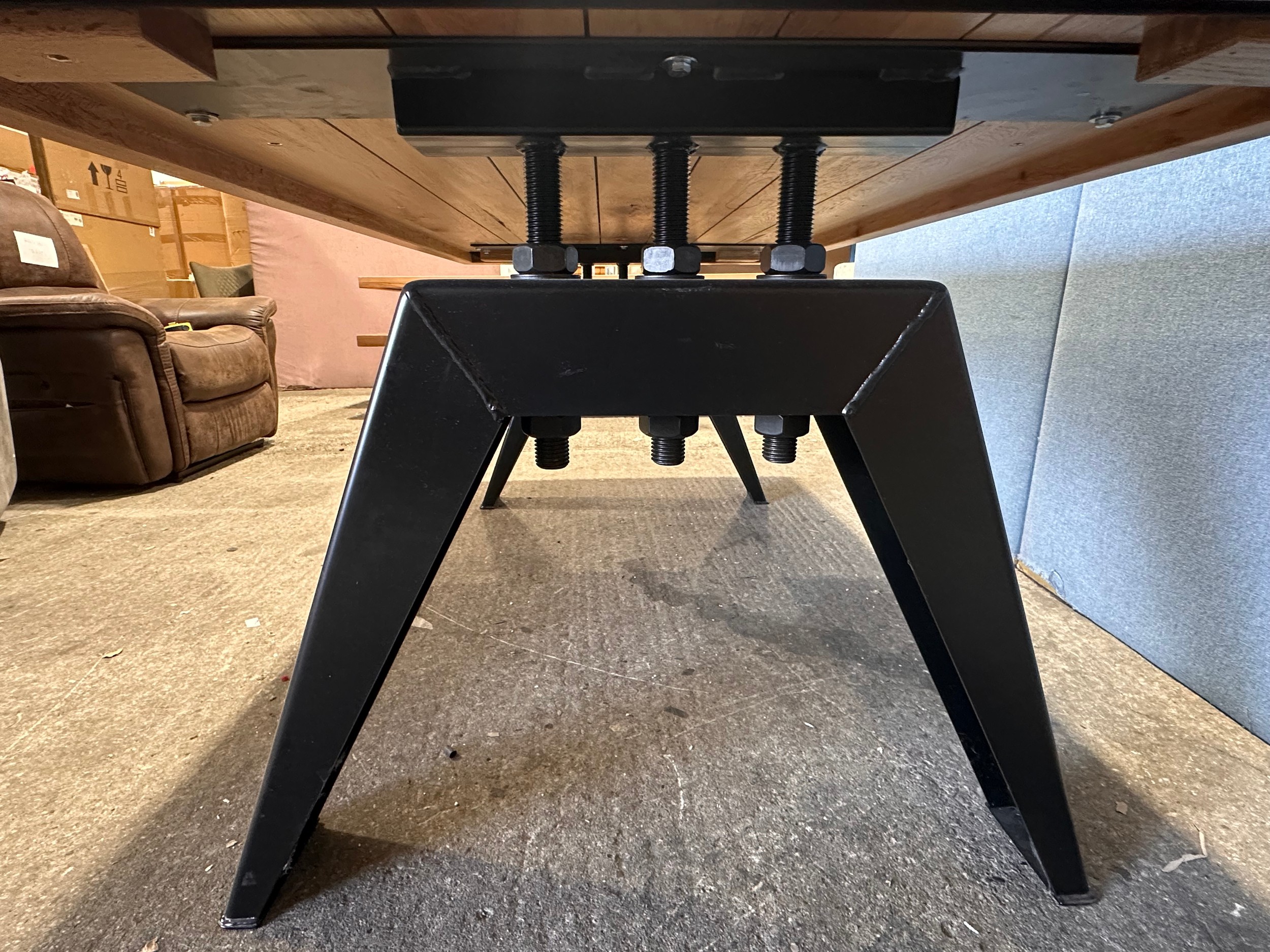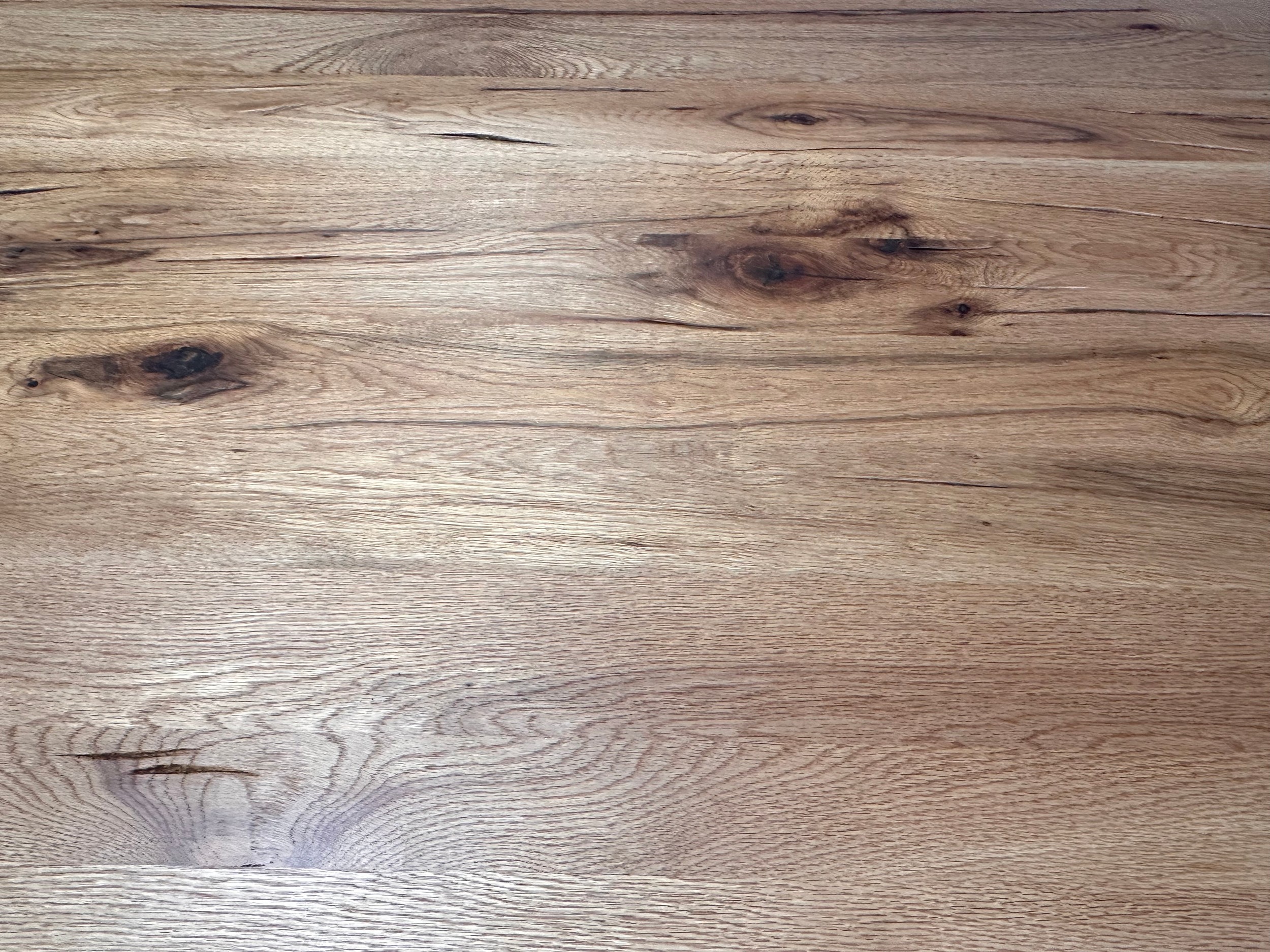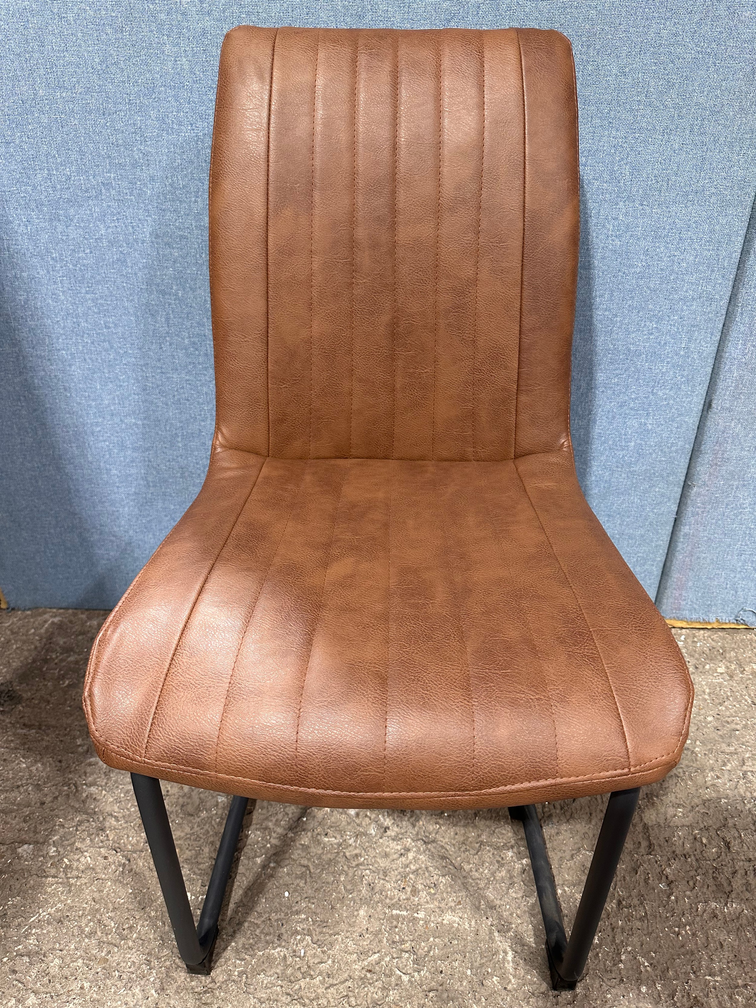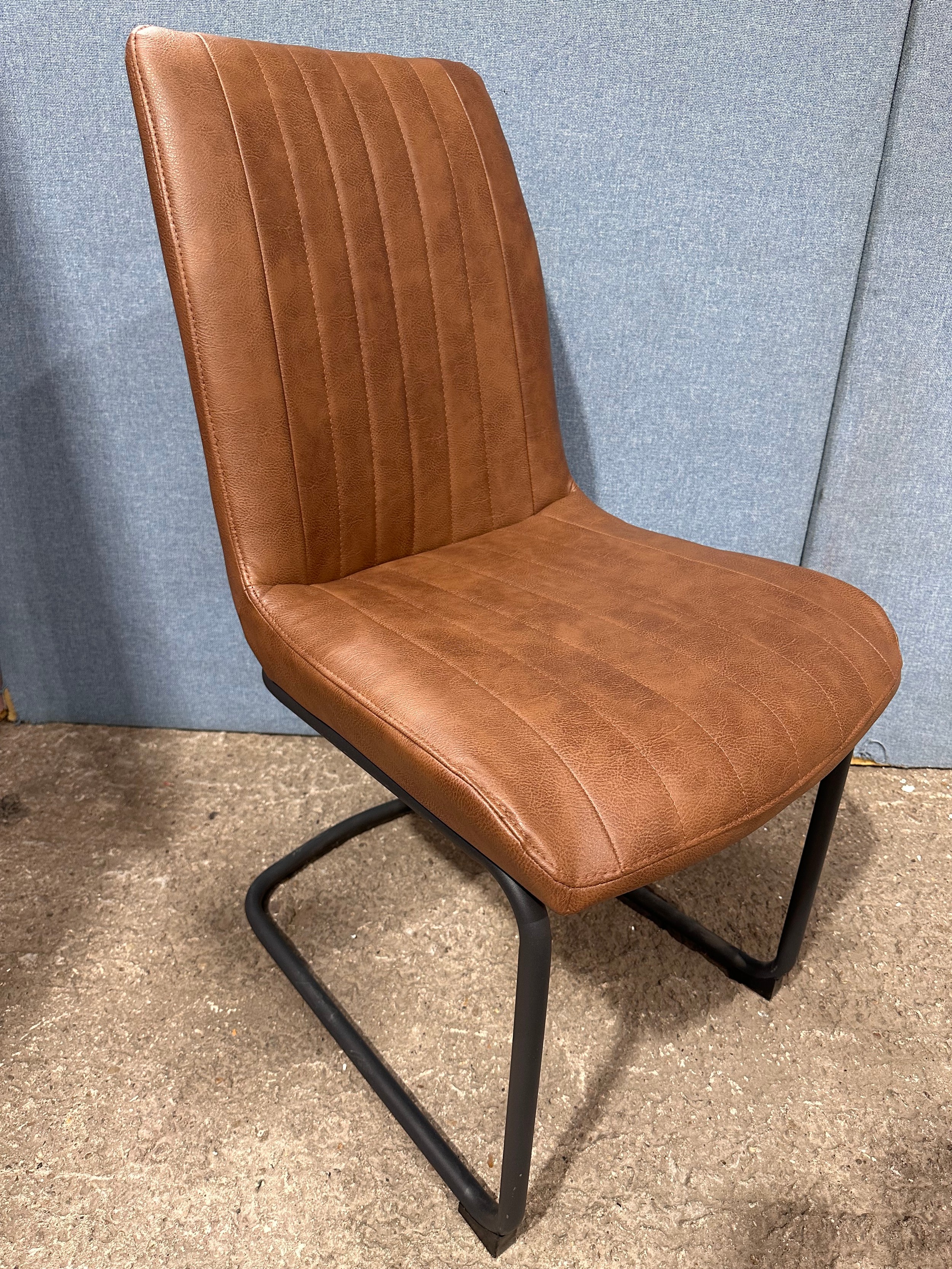 A solid oak 200cm dining table with 6 brown leather dining chairs