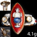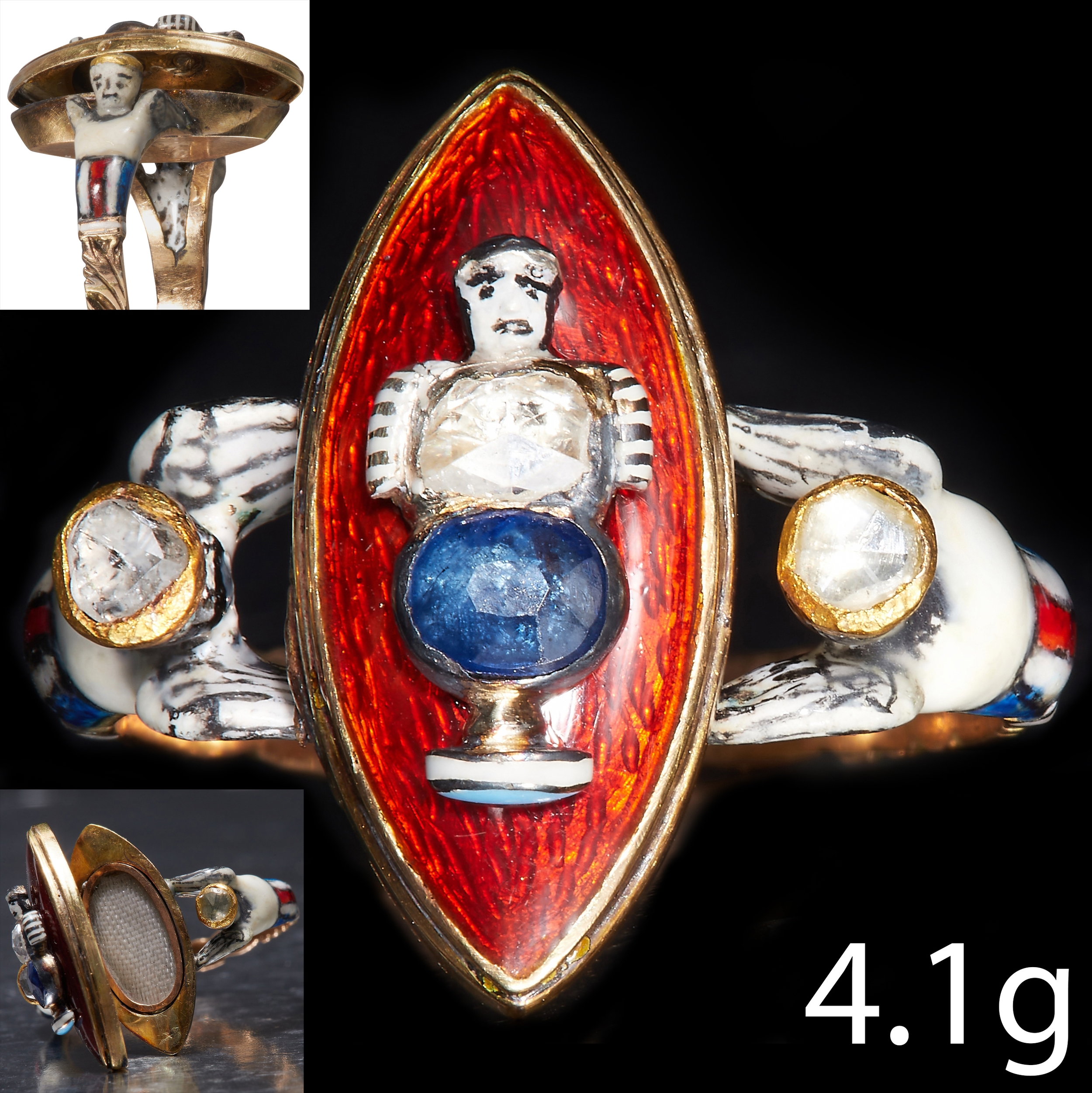 RARE ANTIQUE GEORGIAN ENAMEL SAPPHIRE AND DIAMOND LOCKET RING,