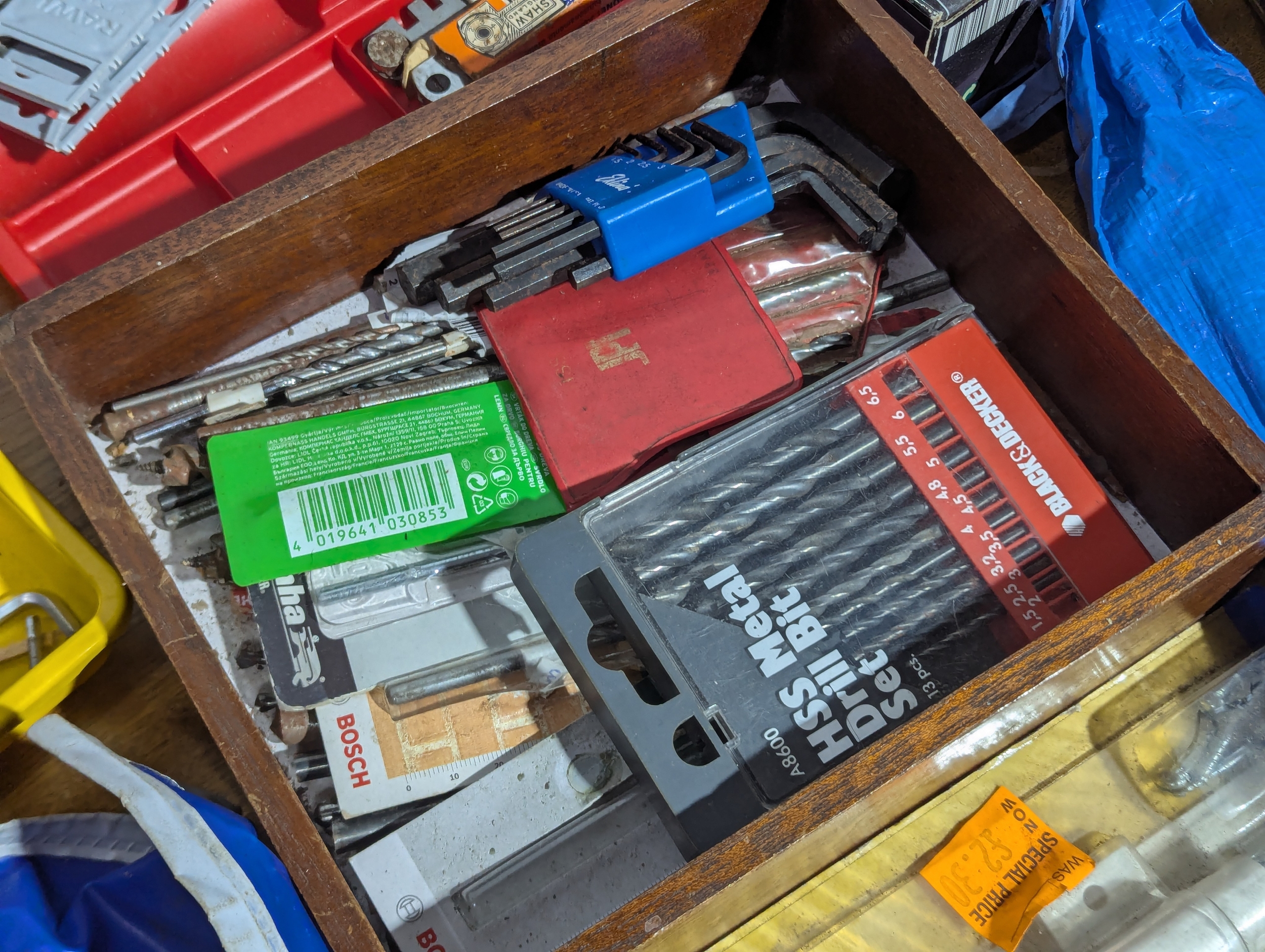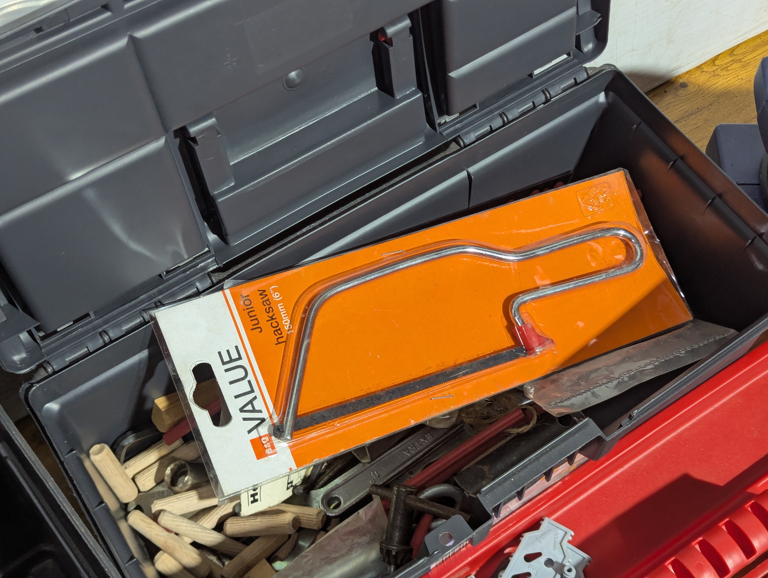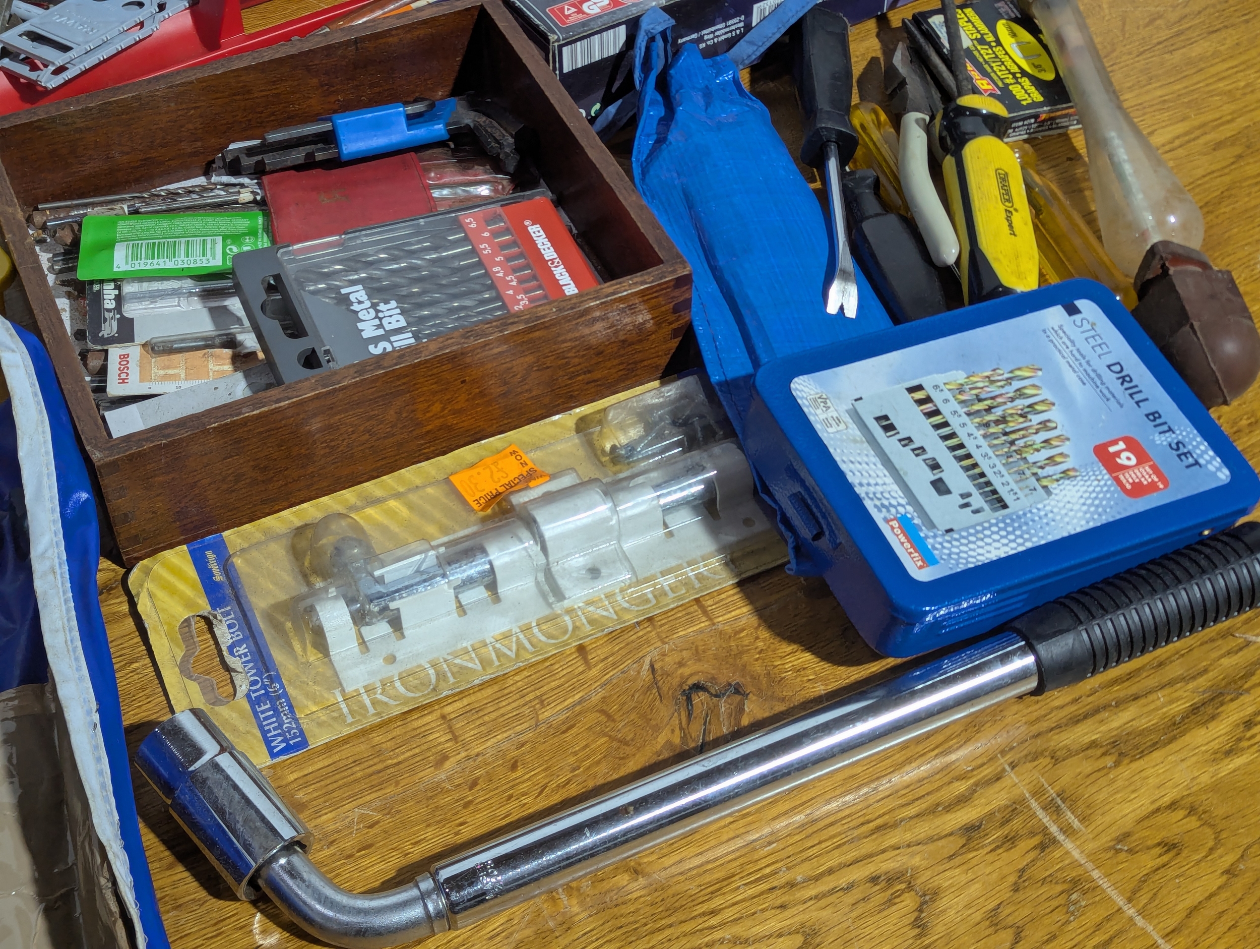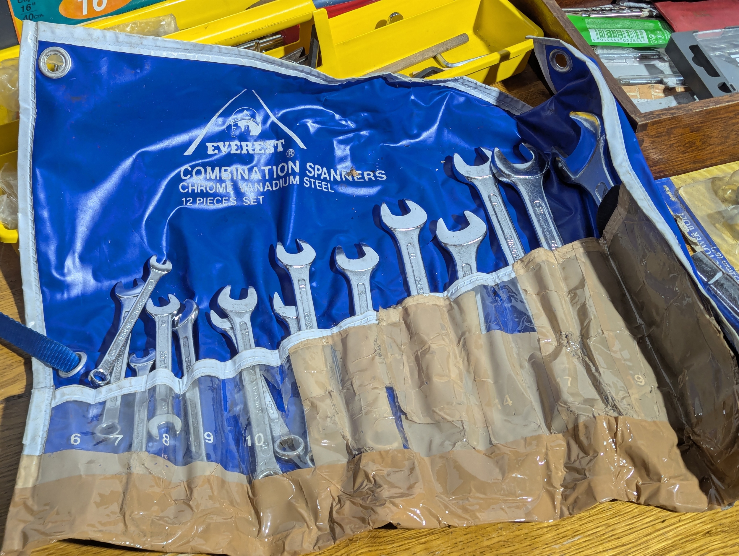 Quantity of tools including 2 tool boxes, electric sander, Everest spanners set, drill bits etc