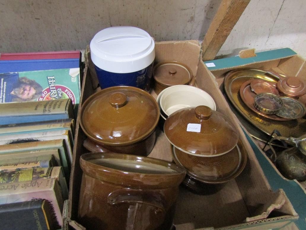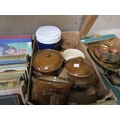 BOX OF PEARSONS BROWN GLAZED COOKING STONEWARE ETC